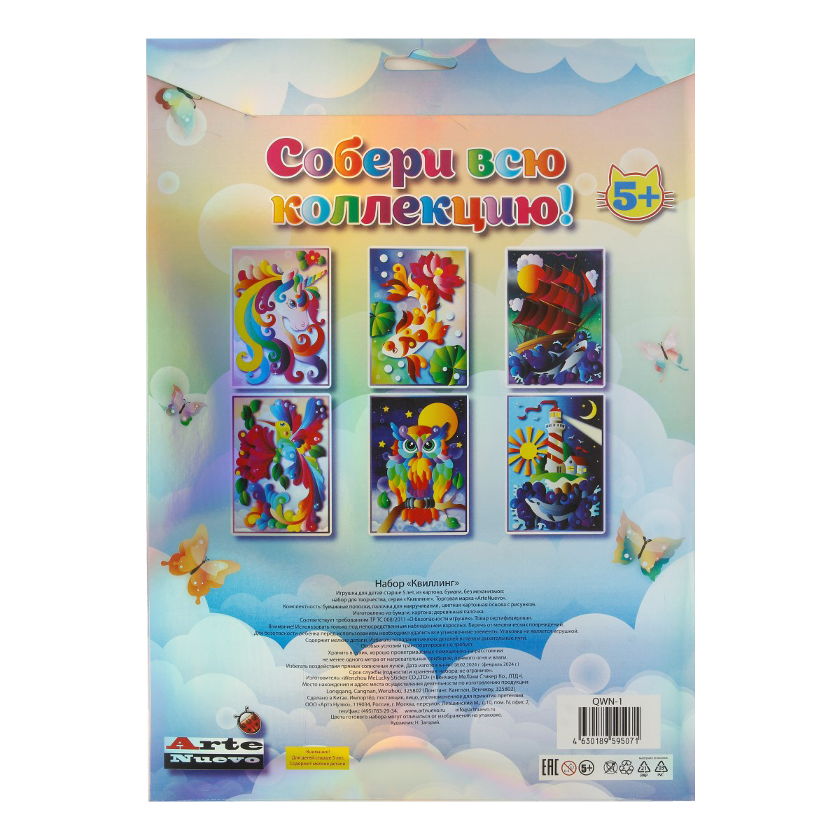 Набор для творчества "Квиллинг". Создайте интересные детали для картины с помощью разноветных полосок и палочки для накручивания. На обложке представлен образец готовой картины. Детали можно крутить самостоятельно на свой вкус.