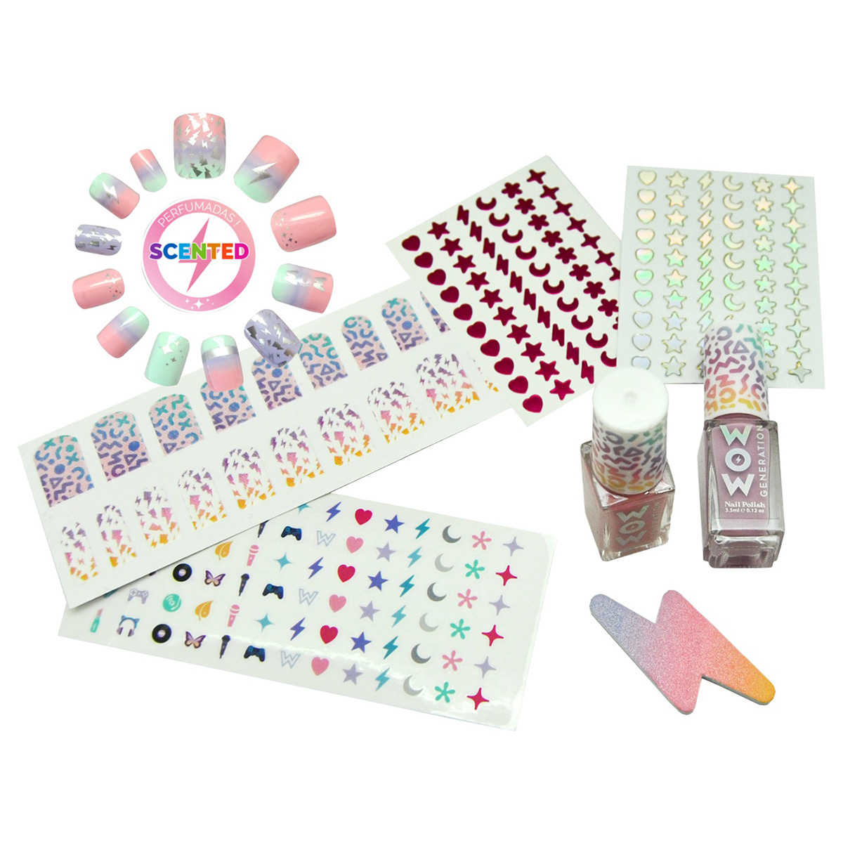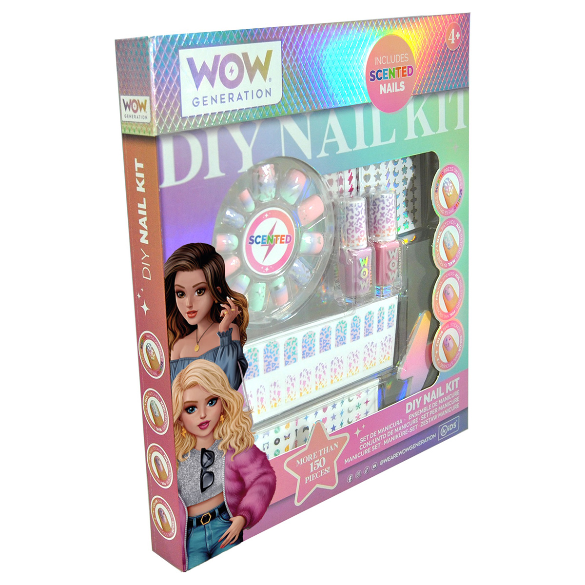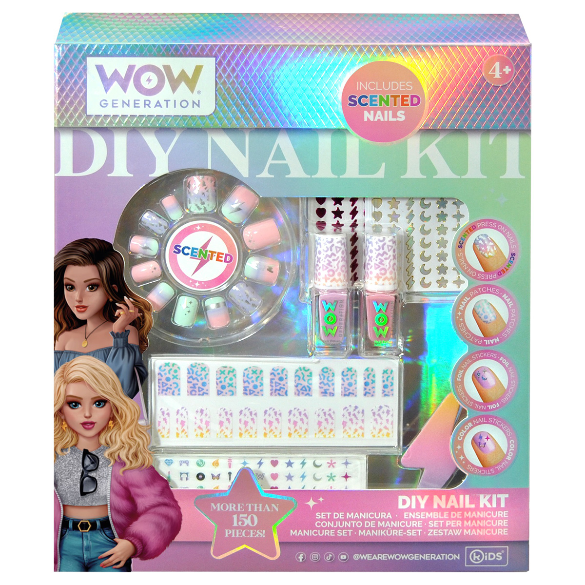 Набор для ногтей от испанского бренда WOW Generation — это идеальный подарок для маленьких модниц старше 4 лет! В набор входят два ярких лака для ногтей, ароматизированные накладные ногти с различными забавными дизайнами и стикеры для дополнительного декора. Все элементы набора безопасны для использования детьми и разработаны с учетом их потребностей. Лак легко наносится и быстро высыхает, а накладки удобно крепятся и снимаются. Стикеры позволяют добавить индивидуальные акценты и сделать маникюр еще более уникальным. Этот набор поможет девочкам выразить свою креативность и почувствовать себя настоящими стилистами!