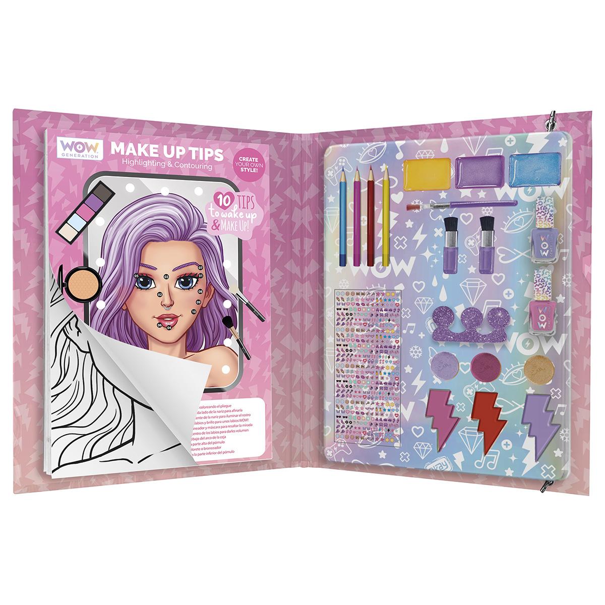 Набор для нанесения макияжа от испанского бренда WOW Generation – это идеальный подарок для юной модницы! В набор входят два лака для ногтей, разделитель для пальцев, три бальзама для губ, три оттенка теней, кисти для макияжа и набор трафаретов для создания уникальных образов. Этот комплект позволит девочке экспериментировать с макияжем, создавая яркие и интересные образы. Все продукты безопасны для использования детьми и легко смываются. Пусть ваша малышка почувствует себя настоящим визажистом и раскроет свой творческий потенциал с WOW Generation!