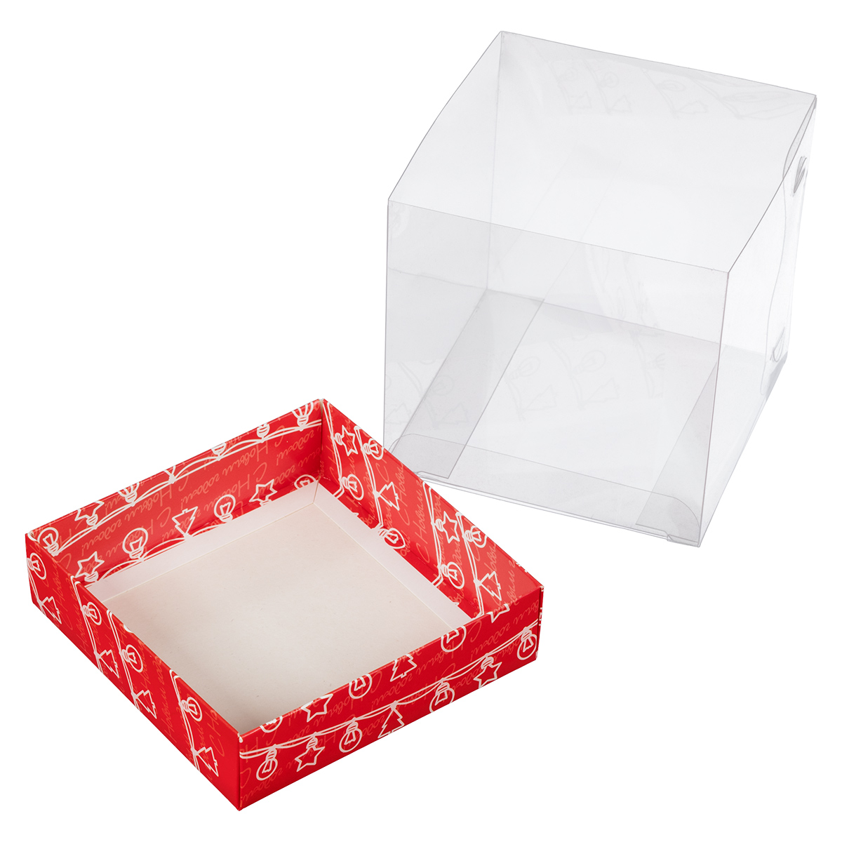 Кондитерская упаковка предназначена для транспортировки и презентации кондитерских изделий. Коробка проста и удобна в сборке. Коробка с новогодним принтом с изображением праздничной гирлянды. Она небольшая, пригодна для хранения зефира, рулета, эклеров, макарон, баранок, маленьких подарков и праздничных сюрпризов.