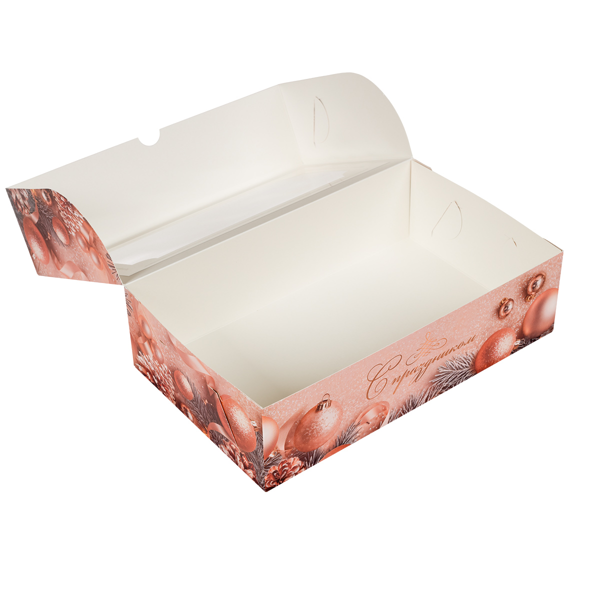 Кондитерская упаковка предназначена для транспортировки и презентации кондитерских изделий. Коробка проста и удобна в сборке. Новогодняя коробка с принтом. Подходит для упаковки печенья, пряников, зефира, безе, макарон и других десертов.