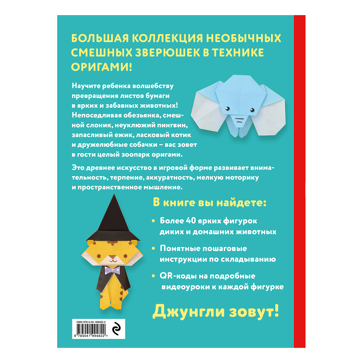Большая коллекция необычных смешных зверюшек в технике оригами! Непоседливая обезьянка, смешной слоник, неуклюжий пингвин, запасливый ежик, ласковый котик и дружелюбные собачки – вас зовет в гости целый зоопарк оригами. Более 40 ярких фигурок диких и домашних животных с понятными пошаговыми инструкциями по складыванию, которые дополнены подробными видео-уроками, доступными по qr-коду. Отправиться на сафари сможет даже дошкольник!