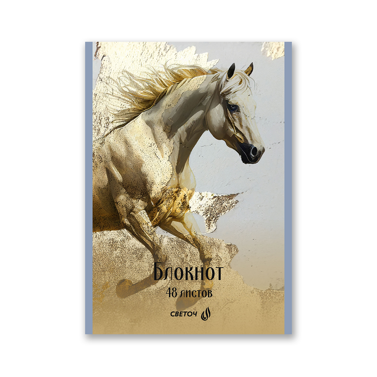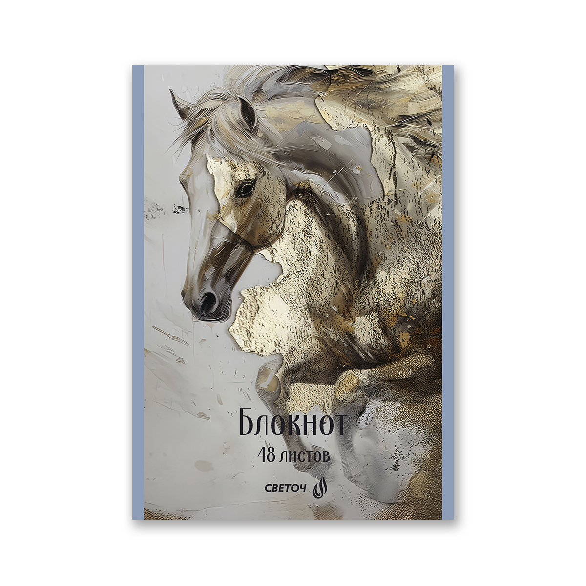 Удобный и стильный блокнот 48 листов, А5 формата - подойдёт для ваших записей, заметок и зарисовок. Внутренний блок изготовлен из качественной офсетной бумаги плотностью 60 г/кв. м, 100% белизны, обложка из мелованного картона плотностью 190 г/кв. м. Линовка - клетка. Вид скрепления - скоба.