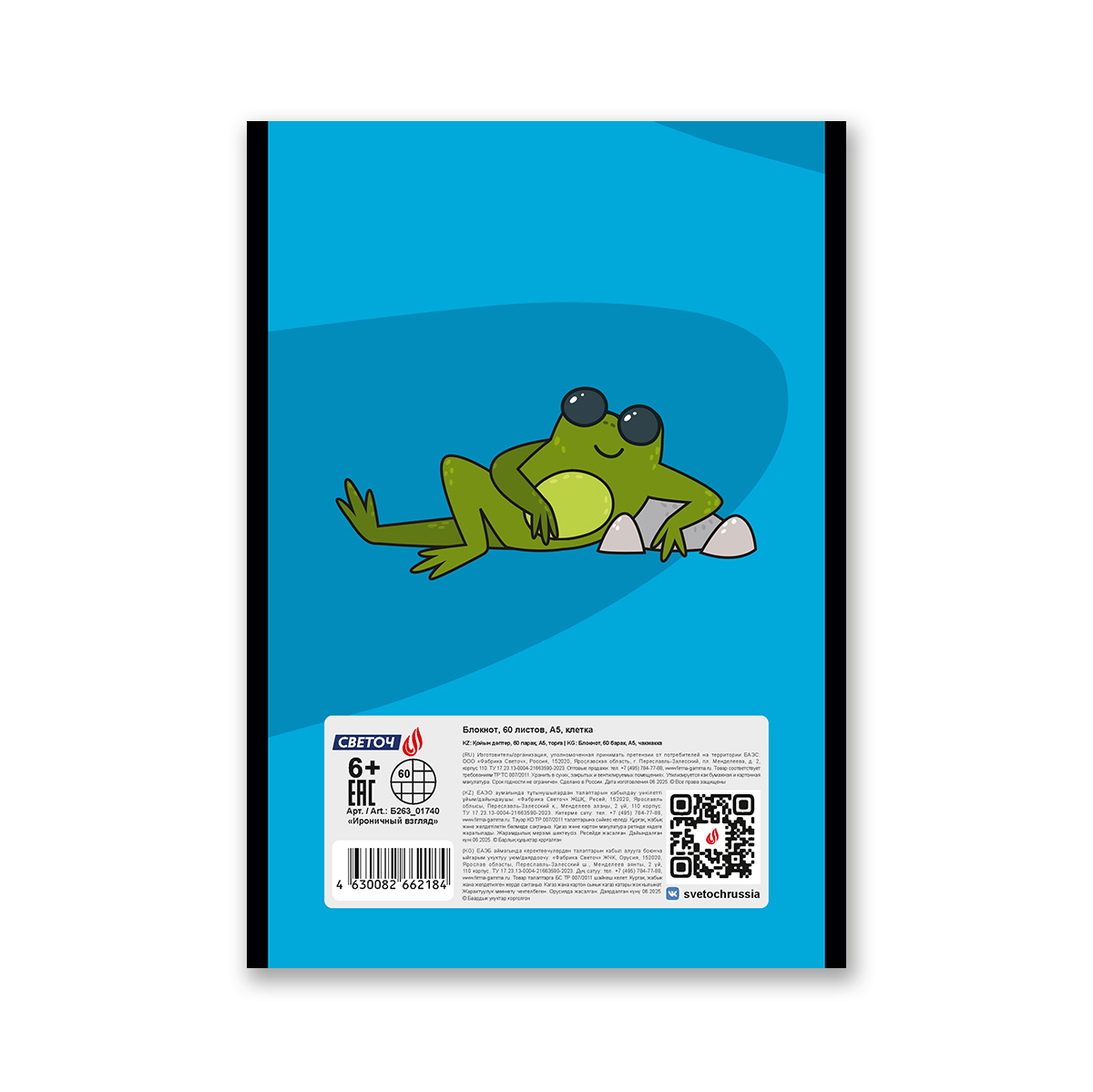 Удобный и стильный блокнот 60 листов, А5 формата - подойдёт для ваших записей, заметок и зарисовок. Внутренний блок изготовлен из качественной офсетной бумаги плотностью 60 г/кв. м, 100% белизны, обложка из мелованного картона плотностью 190 г/кв. м. Линовка - клетка. Вид скрепления - скоба.