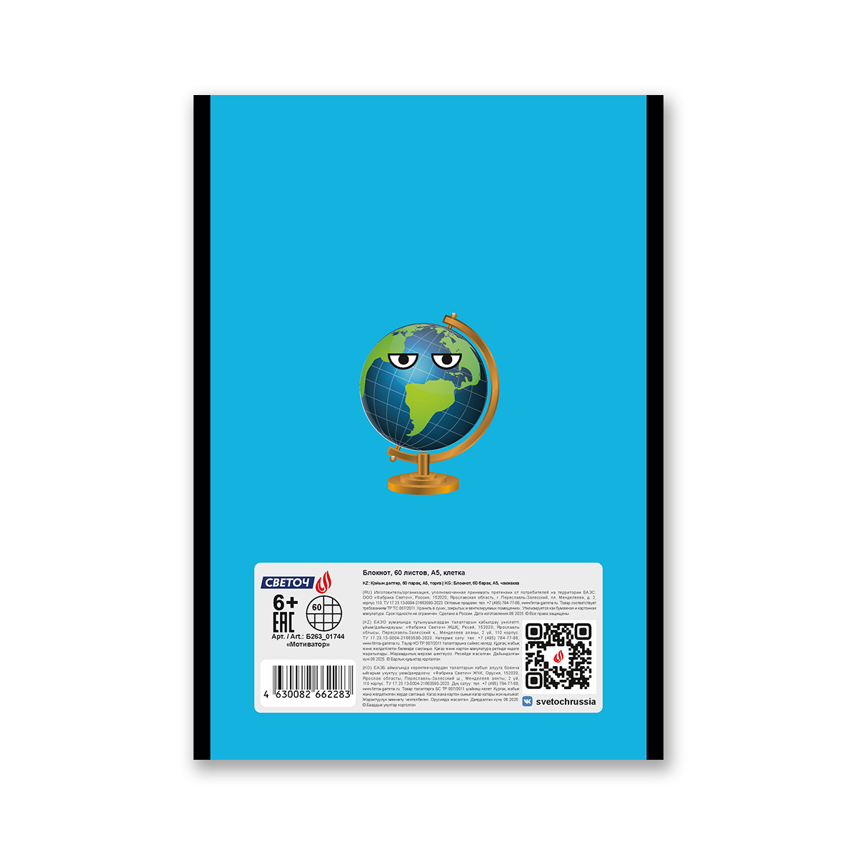 Удобный и стильный блокнот 60 листов, А5 формата - подойдёт для ваших записей, заметок и зарисовок. Внутренний блок изготовлен из качественной офсетной бумаги плотностью 60 г/кв. м, 100% белизны, обложка из мелованного картона плотностью 190 г/кв. м. Линовка - клетка. Вид скрепления - скоба.
