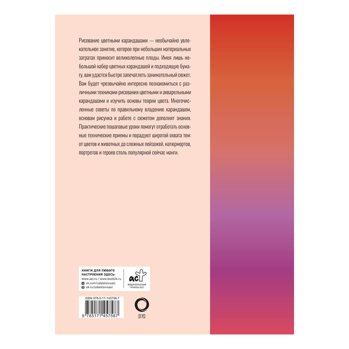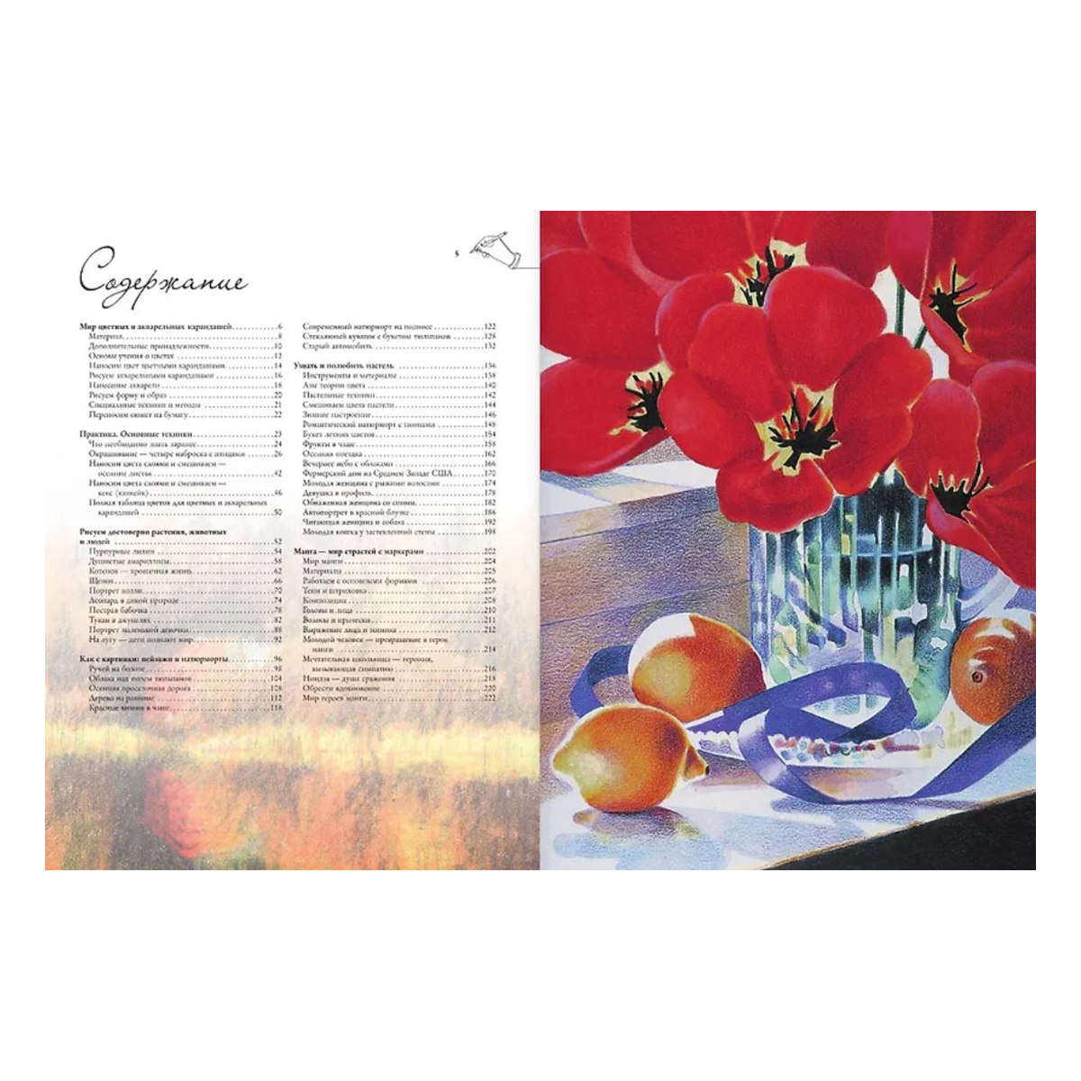 Рисование цветными карандашами, пастелью, цветными маркерами— необычайно увлекательное занятие, которое при небольших материальных затратах приносит великолепные плоды. Имея лишь небольшой набор цветных карандашей и подходящую бумагу, вам удастся быстро запечатлеть занимательный сюжет. Вам будет чрезвычайно интересно познакомиться с различными техниками рисования цветными и акварельными карандашами и изучить основы теории цвета. Многочисленные советы по правильному владению карандашом, основам рисунка и работе с сюжетом дополнят знания. Практические пошаговые уроки помогут отработать основные технические приемы и порадуют широтой охвата тем: от цветов и животных, до сложных пейзажей, натюрмортов, портретов и героев столь популярной сейчас манги.