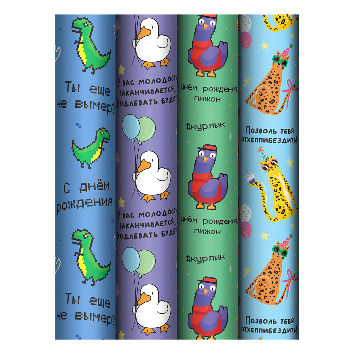 Упаковочная бумага MESHU Fun с глянцевой поверхностью прекрасно подходит для упаковки и декорирования подарков. Универсальный размер 70*100 см позволит упаковать предметы разных габаритов. Плотность бумаги – 80 г/м2. Представлено 4 дизайна, которые идеально подойдут для упаковки подарка на день рождения. Рулон упакован в термоплёнку для удобной транспортировки и хранения. • Размер: 70*100 см; • Плотность бумаги: 80 г/м2.