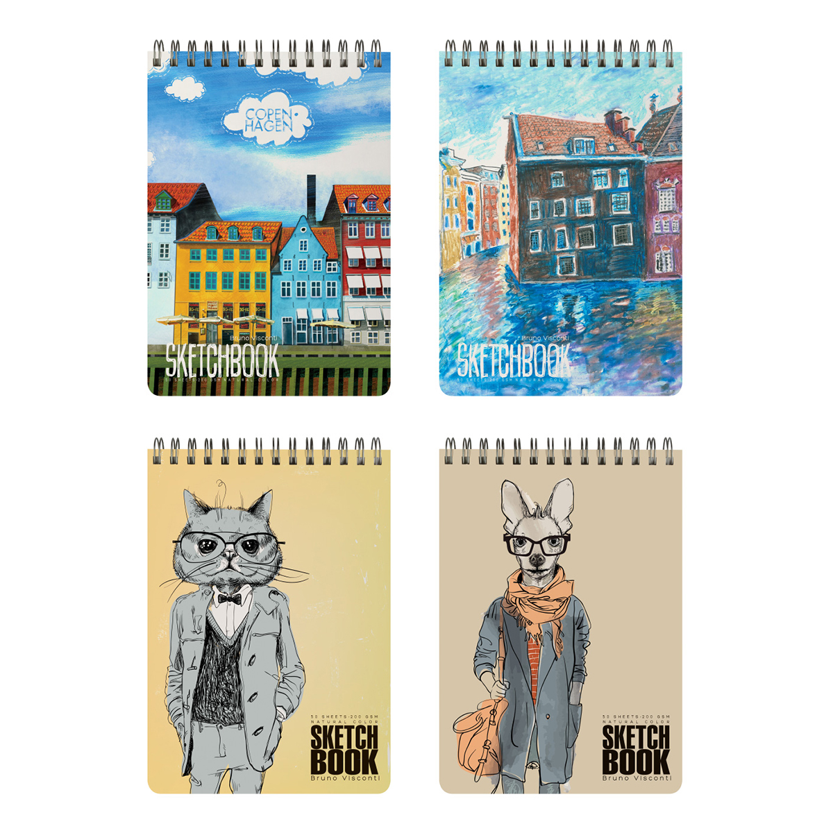 Скетчбук для тех, кому нужна универсальность и возможность использовать различные техники рисования. Плотная бумага - 200 г/кв.м, имеющая разную фактуру с каждой стороны: гладкую и шероховатую. С этим скетчбуком можно смело чередовать и смешивать совершенно разные техники – от акварели до угля. Гладкая сторона лучше всего подходит для графики и карандашей. Выразительная фактурная вторая сторона – для акварели, гуаши, пастели. Но не стоит ограничиваться этим. Экспериментируйте с ручками, фломастерами и даже перманентными маркерами, и жидким мелом. Удобный формат позволяет иметь скетчбук всегда под рукой, а жесткая подложка - делать зарисовки и наброски на весу. Листы скреплены спиралью по верхнему краю, что позволяет переворачивать их на 180 градусов. Со скетчбуком от Bruno Visconti вы легко сможете воплотить все самые смелые художественные фантазии.