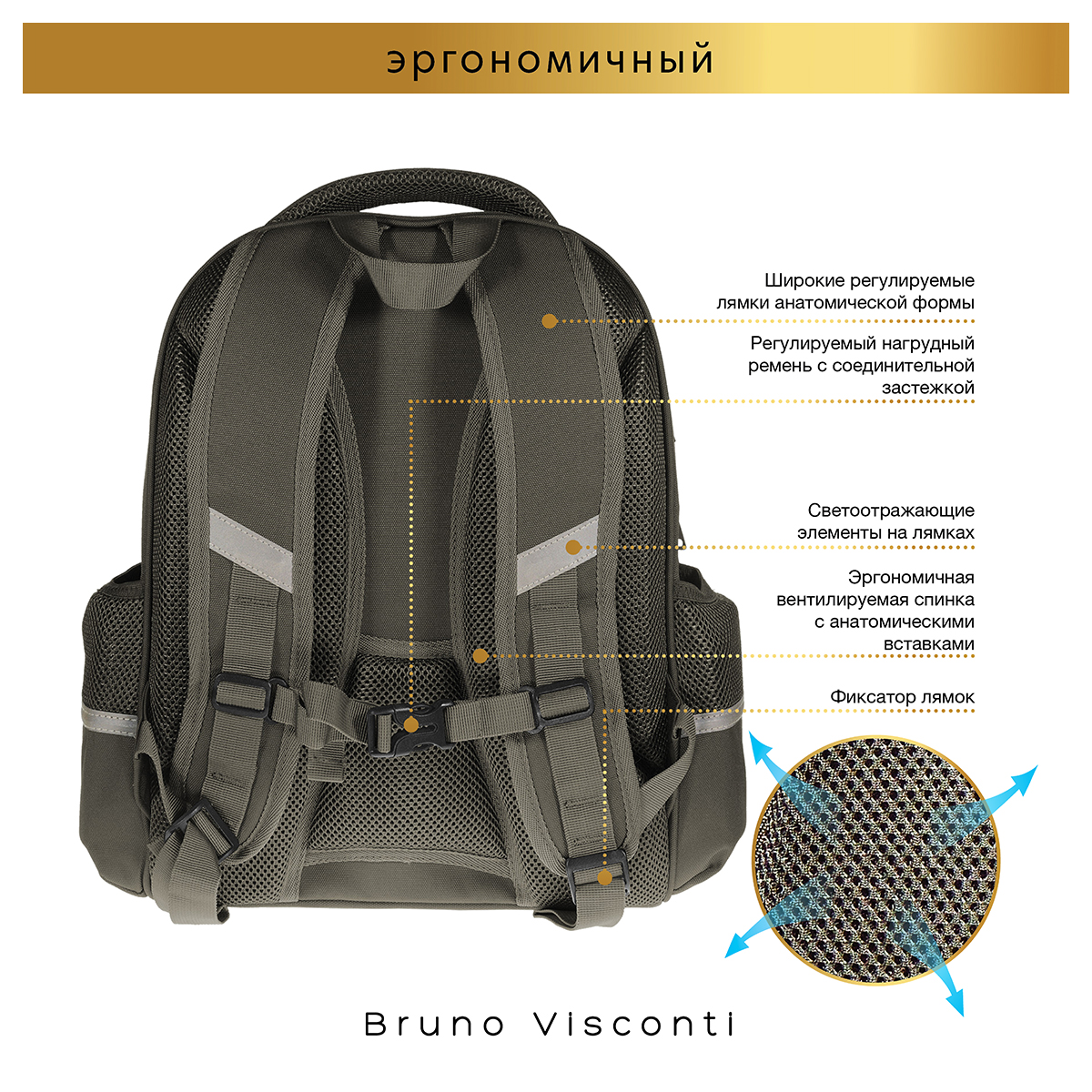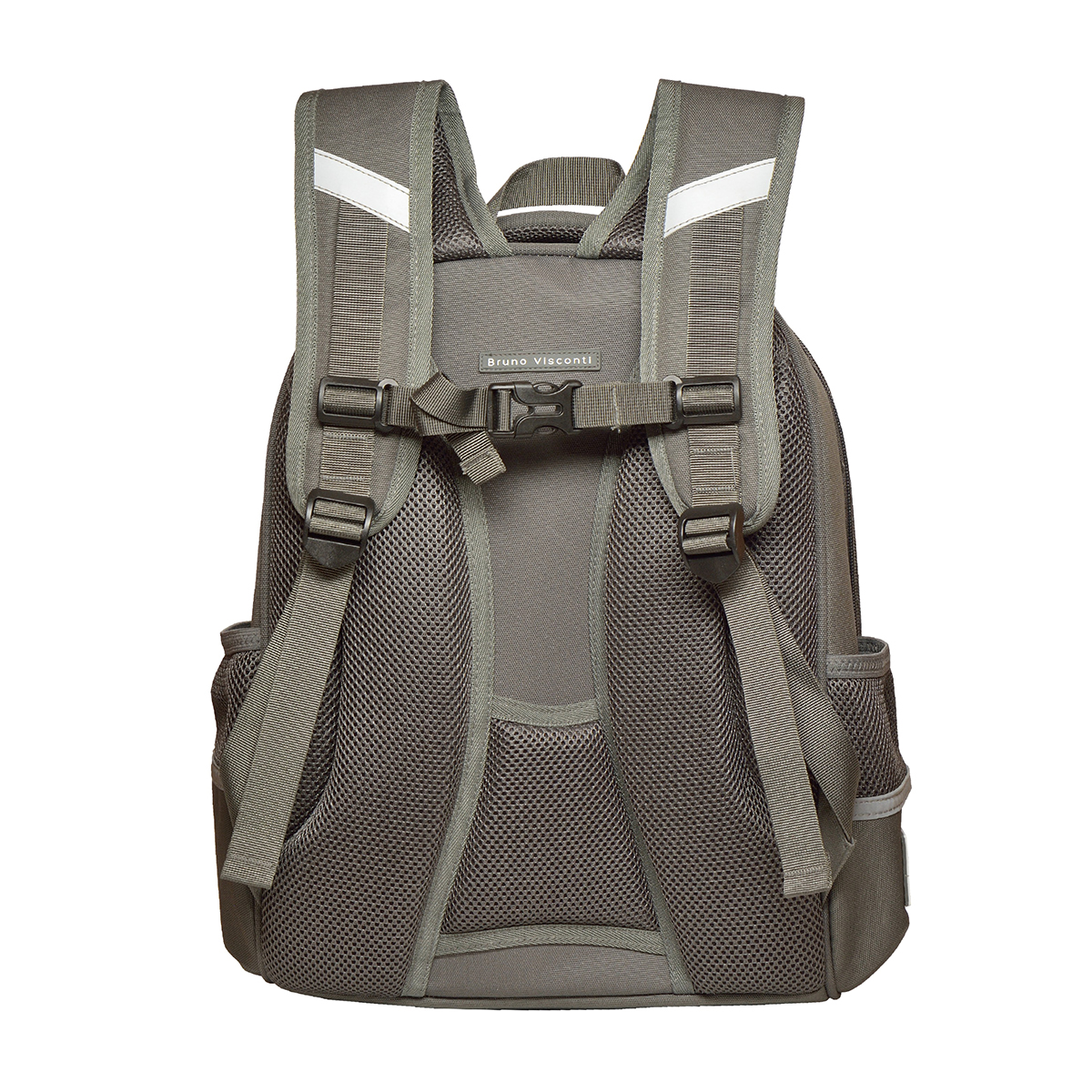Благодаря сложнейшим современным технологиям нанесения на ткань рюкзак украшает авторский дизайн, соответствующий последним трендам. Плотная фирменная подкладка BRUNO VISCONTI идеально сочетается с дизайном и цветом самого рюкзака. Двунаправленные реверсивные надежные 8-мм молнии с 5-см пуллером на замках позволяют легко открывать и закрывать рюкзак. Комфорт и функциональность обеспечивают: эргономичная, вентилируемая, с анатомическими подушечками спинка; регулируемые лямки анатомической формы с застежкой на клипсе, дополнительно участвующие в правильном распределении веса рюкзака; ручка-подвес из надежного материала, устойчивого к истиранию с усиленным креплением, выдерживающая большие нагрузки; мягкая эргономичная ручка; четыре светоотражающих элемента; кольцо для брелока; усиленное дно, оснащенное резиновыми ножками и защищающее от загрязнения дно рюкзака; отделение с органайзером на молнии и карманом-сеточкой; два боковых кармана для термоса или бутылки с водой; отделение, состоящее из трех частей с двумя разделителями, фиксирующим ремнем и дополненное карманом на молнии для карточки. Размеры: 30х38х20 см, вес - 1100 г, объём - 22,8 л. Рюкзак определенно понравится как маленьким владельцам, так и их родителям.