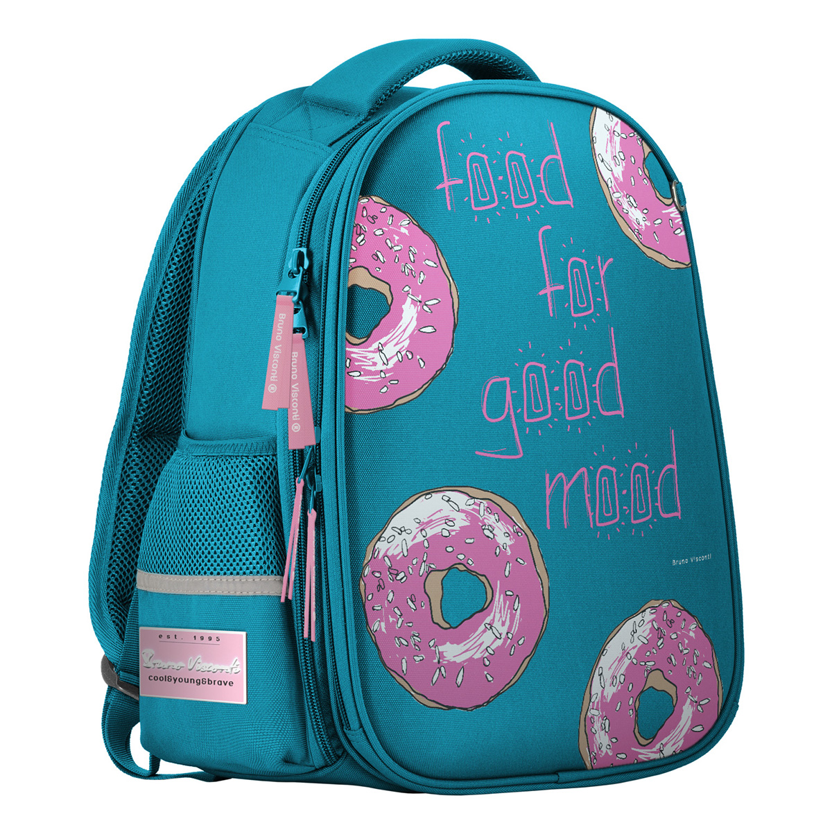 Рюкзак школьный «СЛАДКОЕ НАСТРОЕНИЕ.ДОНАТ» ТМ Bruno Visconti имеет жесткий корпус: передняя и боковые стенки выполнены из усиленного материала, что обеспечивает эффект «капсулы». Для его производства использовалась ткань premium качества: водонепроницаемая, морозостойкая, с повышенной износостойкостью, грязеотталкивающая плотностью 900 DEN.