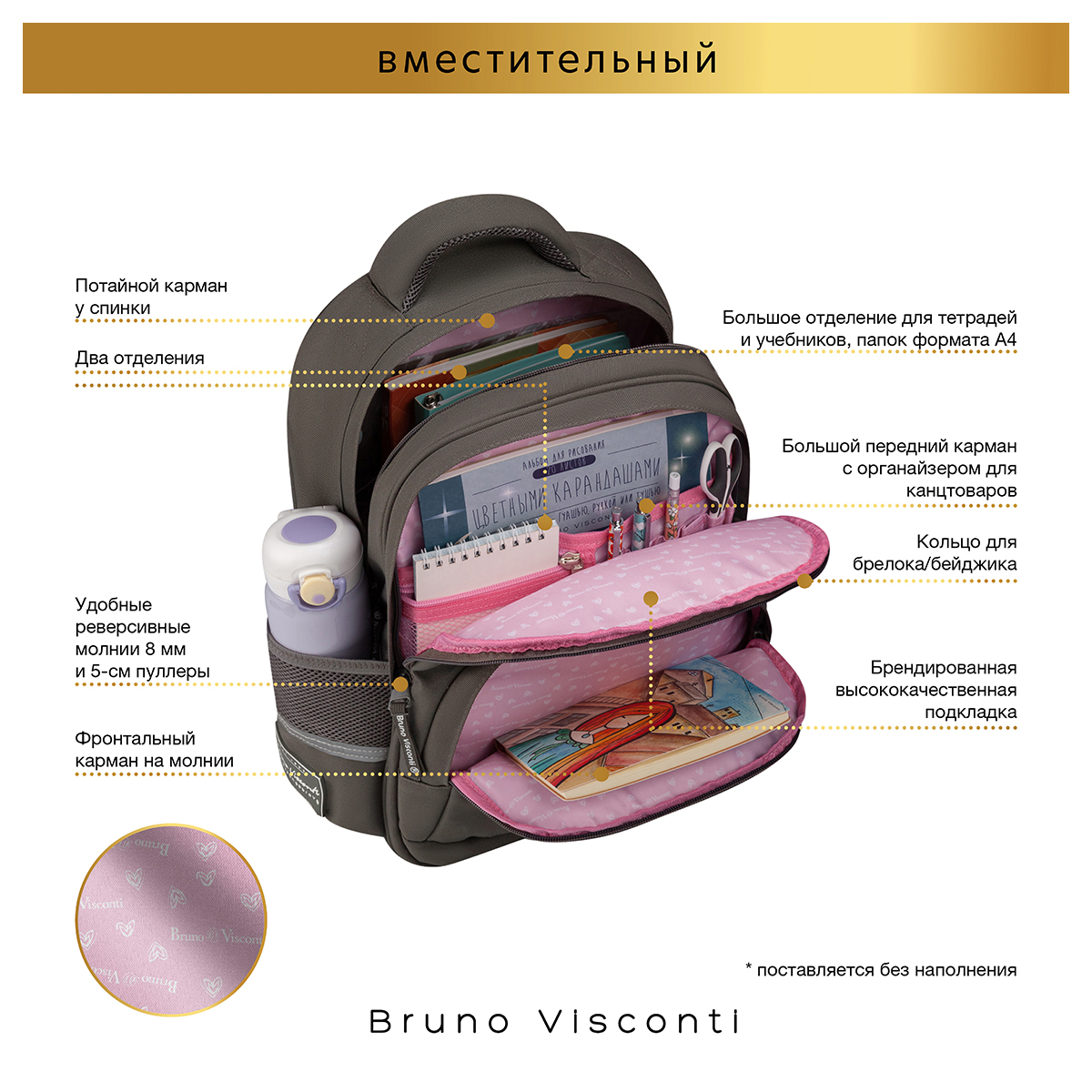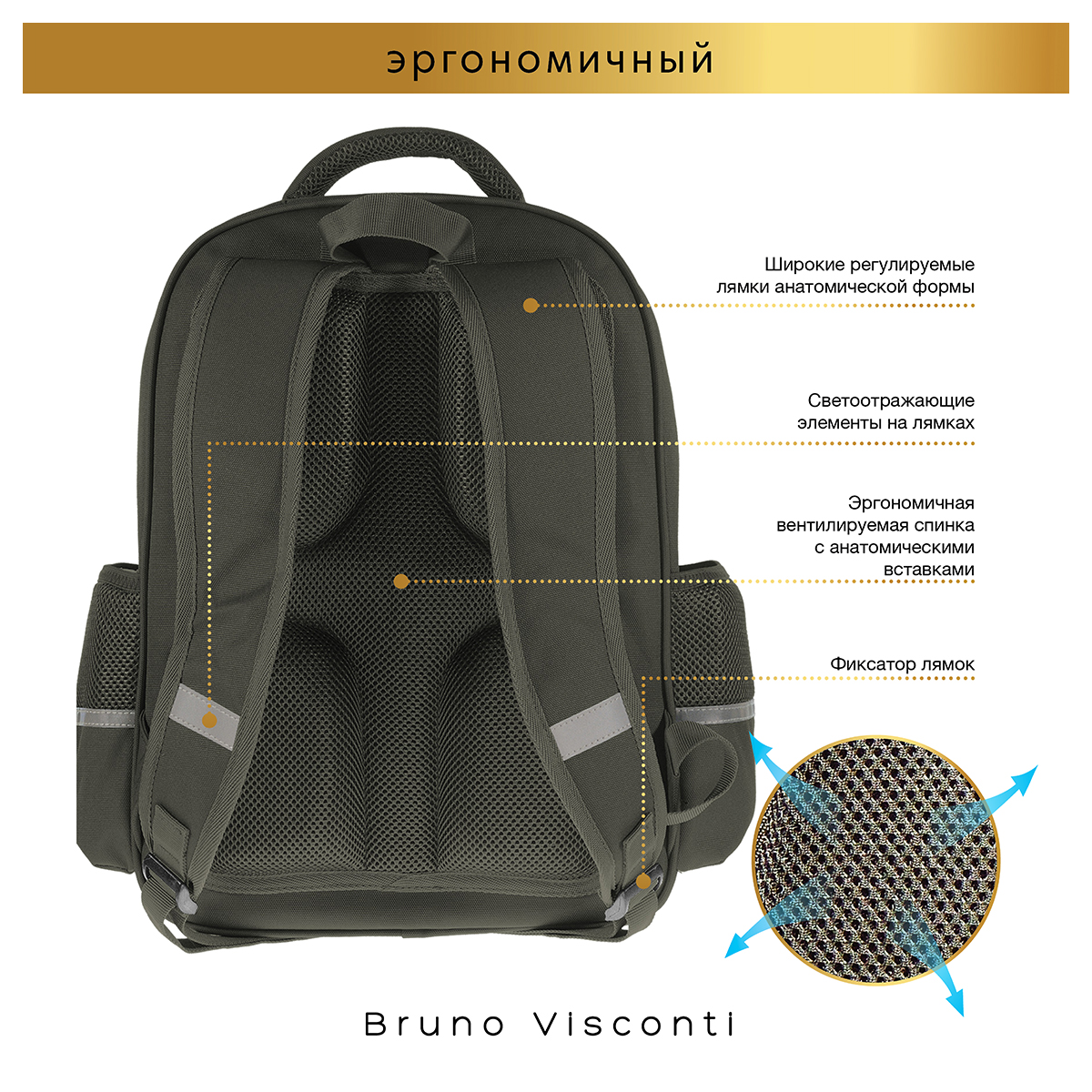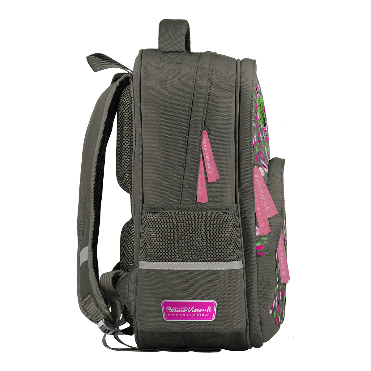 Рюкзак школьный серии Junior «БОЖЬИ КОРОВКИ.ЦВЕТЫ» ТМ BRUNO VISCONTI отличается мягкими боковыми и передними стенками при эргономичной посадке. Для его производства использовалась ткань premium качества: водонепроницаемая, морозостойкая, с повышенной износостойкостью, грязеотталкивающая плотностью 900 DEN. Благодаря сложнейшим современным технологиям нанесения на ткань рюкзак украшает авторский дизайн, соответствующий последним трендам. Плотная фирменная подкладка BRUNO VISCONTI идеально сочетается с дизайном и цветом самого рюкзака. Двунаправленные реверсивные надежные 8-мм молнии с 5-см пуллером на замках позволяют легко открывать и закрывать рюкзак. Вместительный рюкзак имеет большое отделение для тетрадей и учебников с потайным карманом и отделение для тетрадей с органайзером для канцтоваров. Комфорт и функциональность обеспечивают: эргономичная, вентилируемая, с анатомическими вставками спинка; широкие регулируемые лямки анатомической формы; большое отделение для тетрадей и учебников; отделение для тетрадей с органайзером; ручка-подвес из надежного материала, устойчивого к истиранию с усиленным креплением, выдерживающая большие нагрузки; мягкая эргономичная ручка; по два светоотражающих элемента на лямках и боковых карманах; усиленное дно рюкзака оснащено резиновыми ножками, защищающими от загрязнения и влаги; кольцо для брелока/бейджика; фиксатор лямок; потайной карман для магнитной карты; два боковых кармана. Размеры: 30х40х19 см, вес - 800 г, объём - 22,8 л.