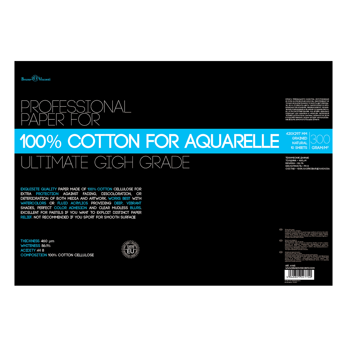 Бумага премиального качества, изготовленная из 100% хлопковой целлюлозы, обеспечивает не только исключительную точность цветопередачи, но и стойкость цвета самой бумаги и изображения при хранении, минимализирует механические повреждения и во время создания рисунка, и при экспонировании, и в архиве. Идеально подходит для акварели и "мокрой" акриловой техники, для пастели, сангины, сепии и угля, если в художественную задачу входит использования весьма заметного рельефа бумаги.