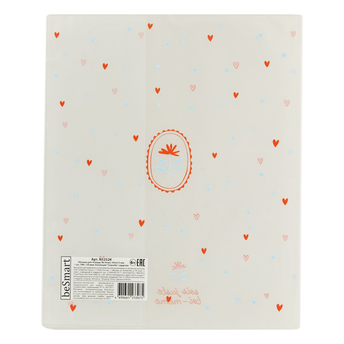 Be Smart Обложка для тетради коллекция Coquette 100 мкм ( 350х210 мм) сердечки N5252K Фото 1.