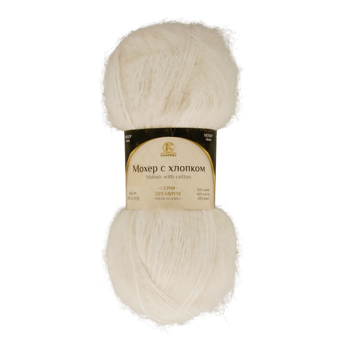 Пряжа Камтекс КТ _Мохер с хлопком 60% мохер, 20% хлопок, 20% акрил 50 г 165 м 205 белый Фото 1.