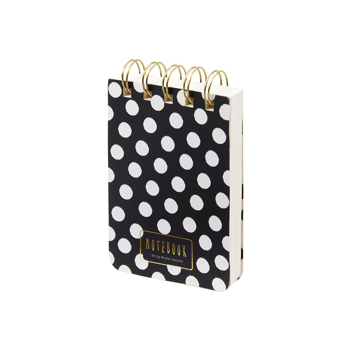 Компактный вертикально ориентированный блокнот формата А7 "Black&White.ГОРОШЕК ЧЕРНЫЙ" из коллекции CUTE JOURNAL торговой марки Bruno Visconti отличается качеством и стильным дизайном. Крепление блока на гребне позволяет открывать блокнот на 360 градусов – удобно для записей на весу во время брифингов, презентаций, быстрых заметок. Обложка со кругленными углами произведена из картона плотностью 400 г/кв.м и убережет блок для записей от замятий. Сам внутренний блок изготовлен из бежевой бумаги плотностью 80 г/кв.м, его линовка в линейку позволит вести записи аккуратно и компактно. Премиальность и благородство придает блокноту матовая ламинация Soft Touch и фольгирование золотом. Благодаря авторскому дизайну и высокому качеству производства блокнот неизменно подчеркнет индивидуальность, хороший вкус его владельца, вызовет положительные эмоции. Такой блокнот привлекает к себе внимание, его приятно дарить и получать в качестве маленького презента.