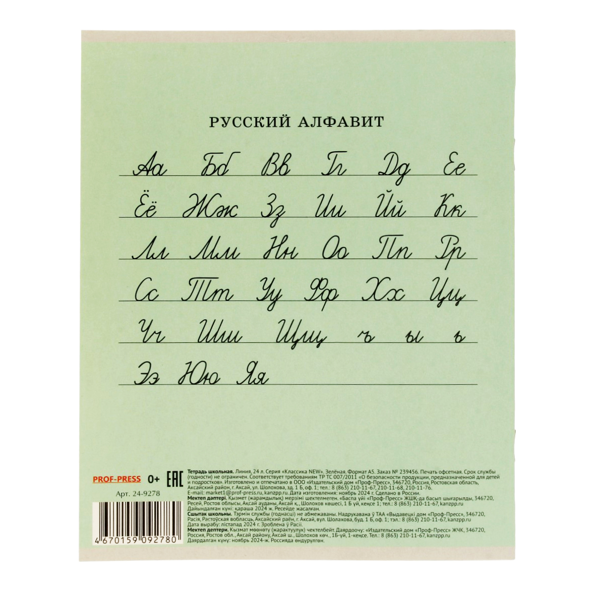 Проф-Пресс Тетрадь КЛАССИКА NEW A5 24 л. на скобе 60 г/кв.м линия 24-9278 зеленая Фото 3.