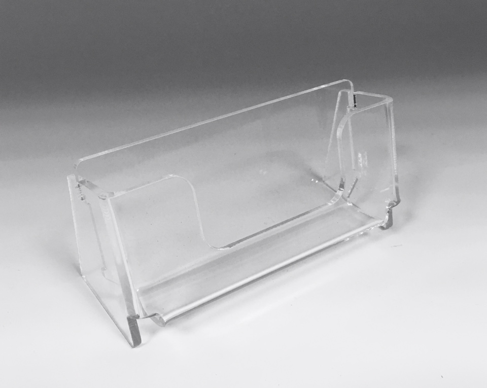 Подставка для визиток настольная, Горизонтальная односторонняя. Предназначена для размещения бумажнопечатной продукции. Изделие изготовлено из акрилового стекла. Вместимость подставки — 20 мм Поставляется в защитной пленке