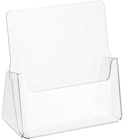 Подставка настольная А5, Вертикальная односторонняя имеет одно отделение. Предназначена для рекламных листовок и других материалов формата А5. Изготовлена из прозрачного пластика. Перед использованием необходимо снять защитную пленку.