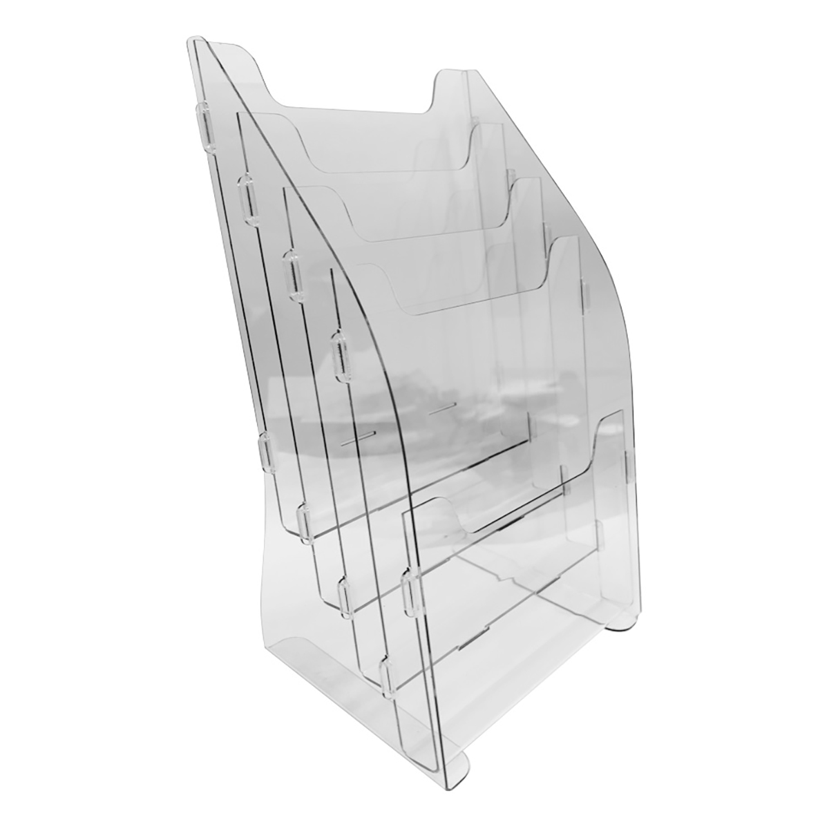 Настольная подставка под буклеты А4, на 4 отделения, предназначена для размещения буклетов и других печатных материалов. За счет широкого основания отличается устойчивостью, что исключает случайное опрокидывание. Подставка выполнена из ПЭТ, благодаря чему имеет высокую прочность. Легко и быстро устанавливается, что экономит время и силы.