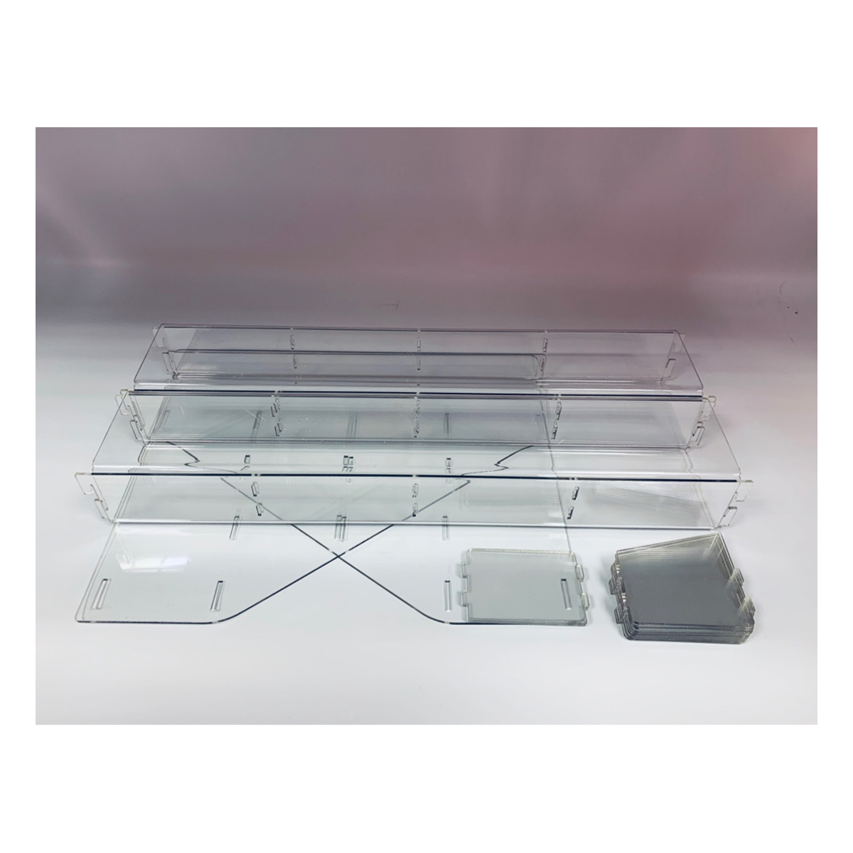 Прозрачная подставка накопитель на 16 ячеек для выкладки ручек, карандашей, маркеров и другой продукции. Подставка легко собирается и разбирается. Выполнена из ПЭТ, благодаря чему имеет высокую прочностьПерегородки ячеек съемные. Размер: 250х410х310 мм [ВхШхГл] / ячейка 70х100х80 мм [ВхШхГл].