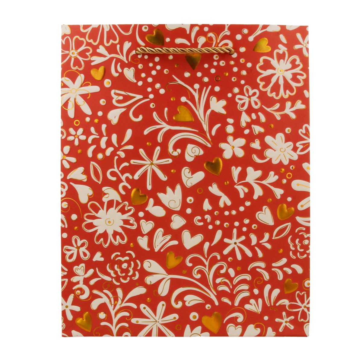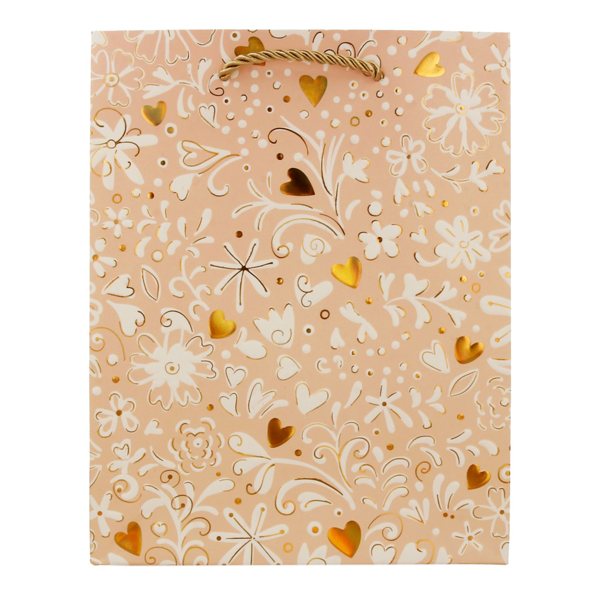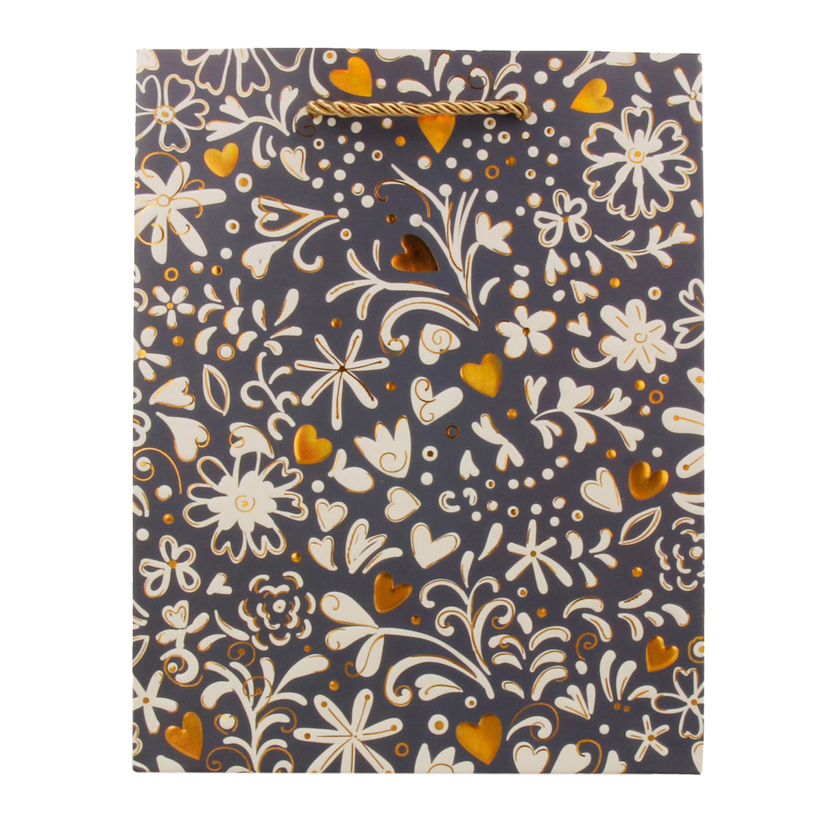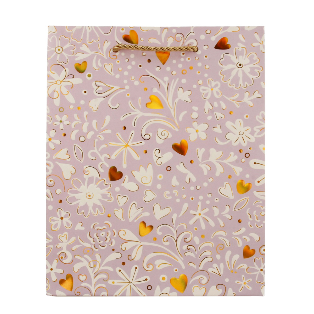 Пакет подарочный цветы, сердца с золотым тиснением 18 х 23 х 8 см L7162
