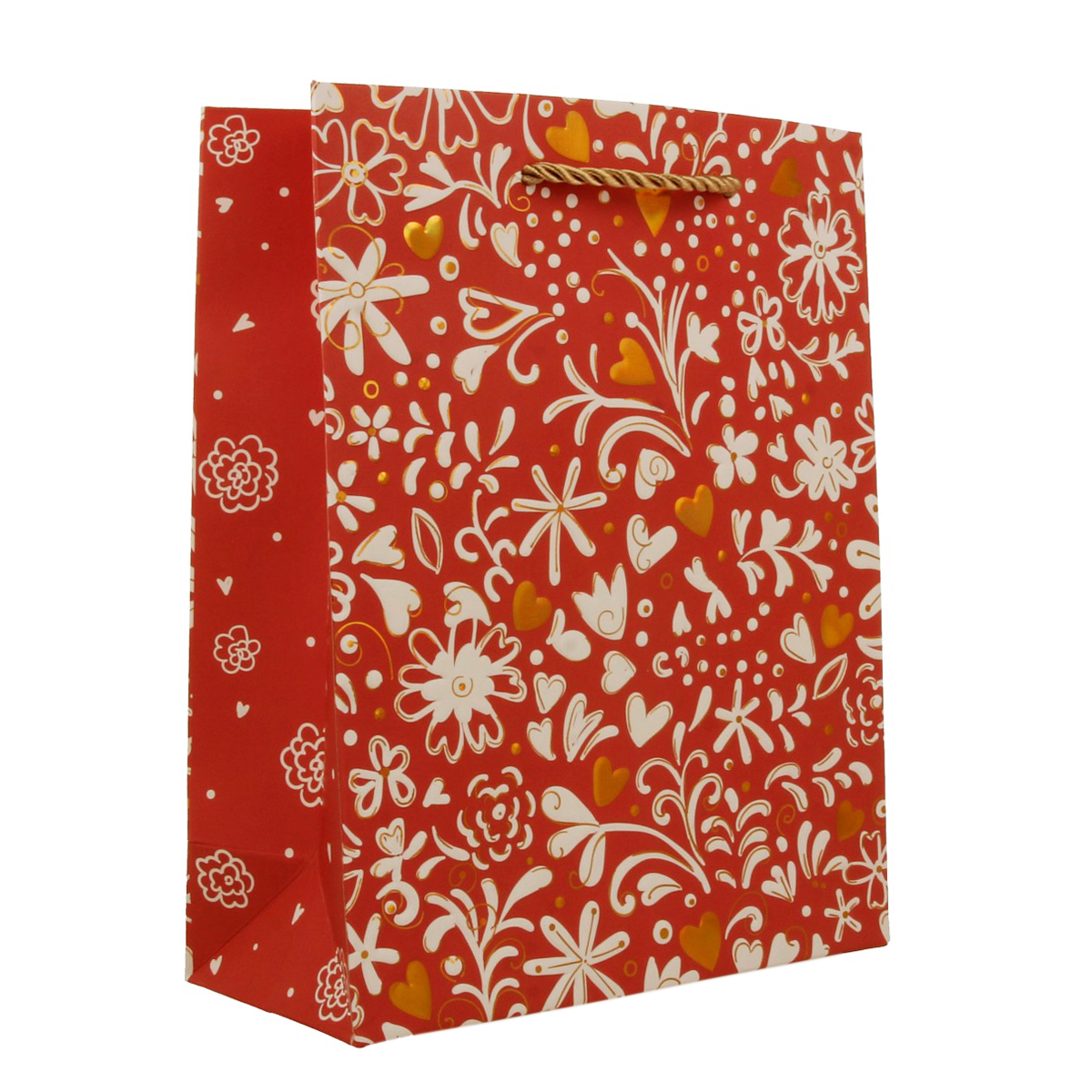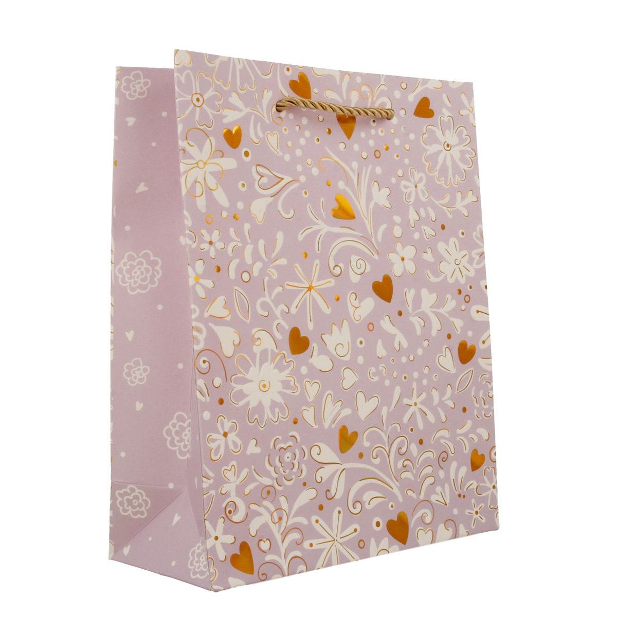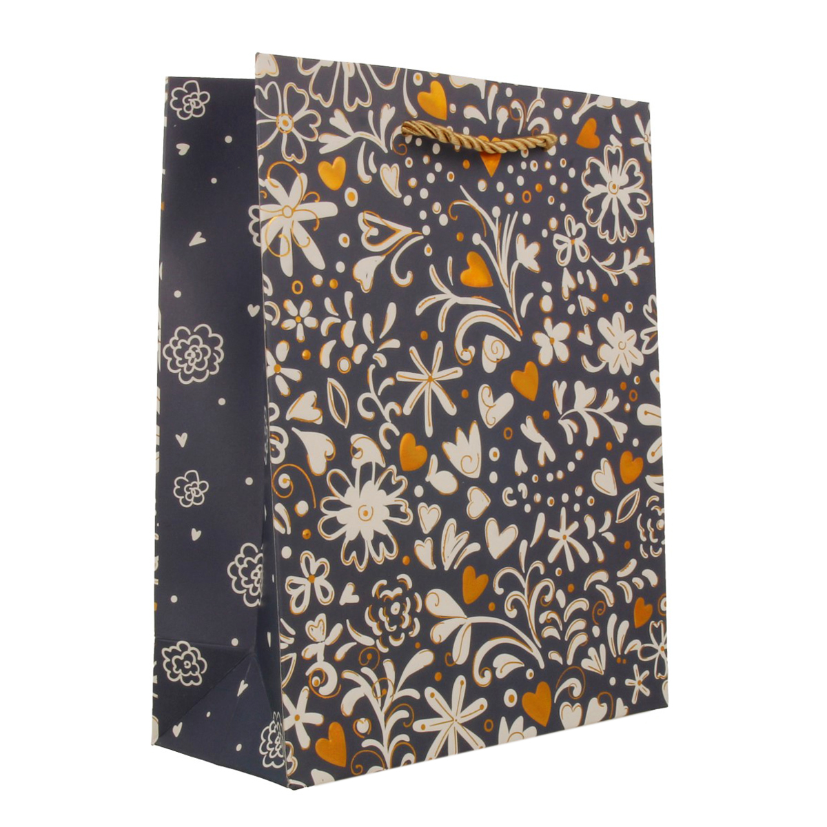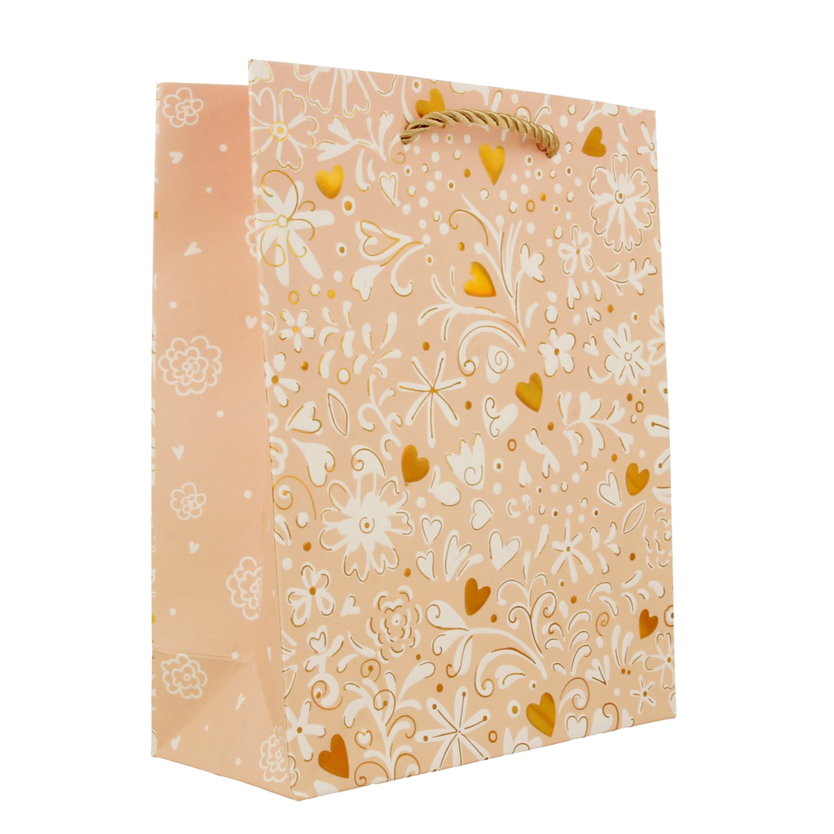 Пакет подарочный цветы, сердца с золотым тиснением 18 х 23 х 8 см L7162