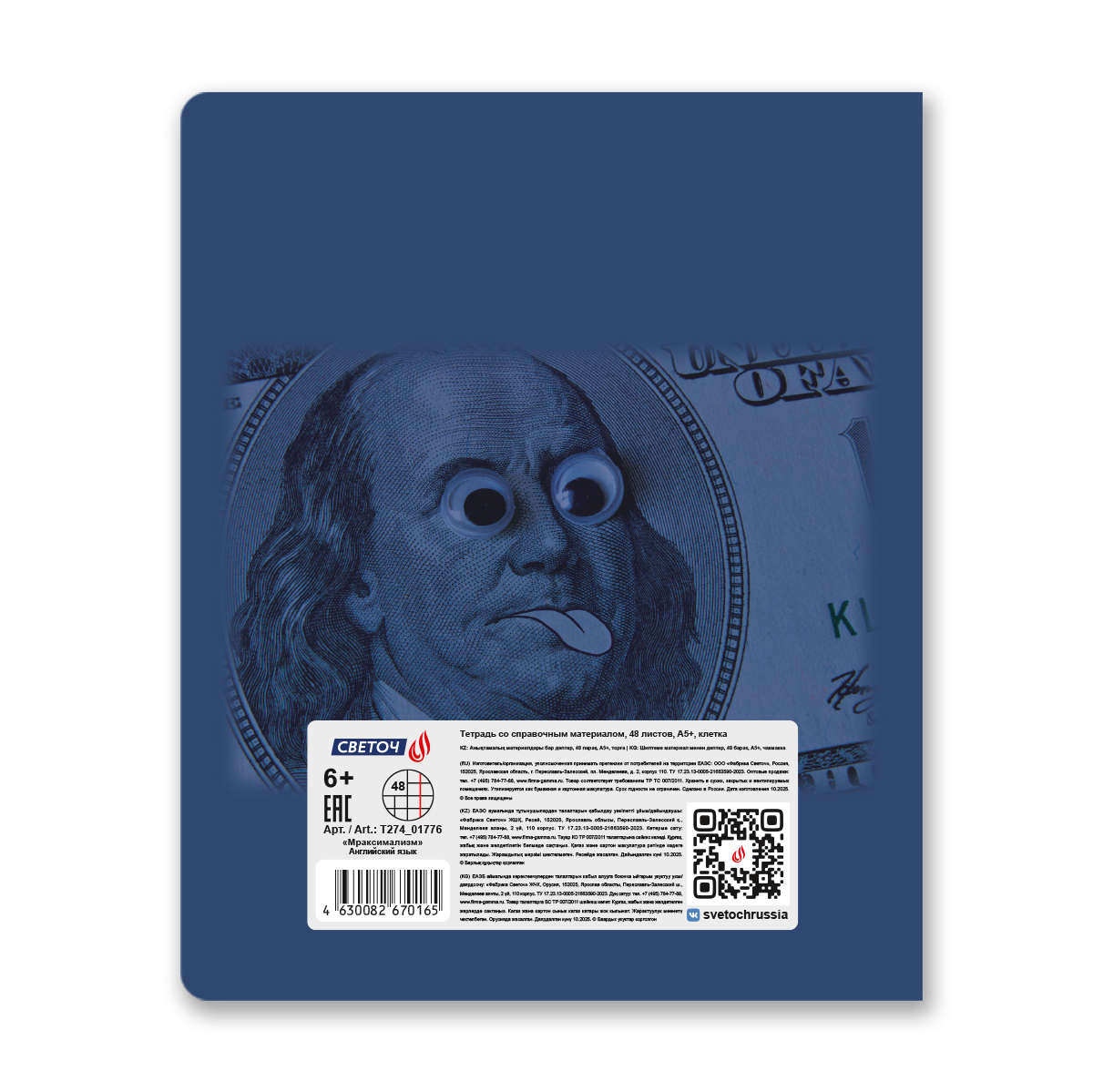 "Светоч" Т274 Тетрадь со справочным материалом "Мраксимализм", A5 48 л. на скобе 60 г/кв.м , белизна 90 % , клетка 01776 "Мраксимализм" Английский язык