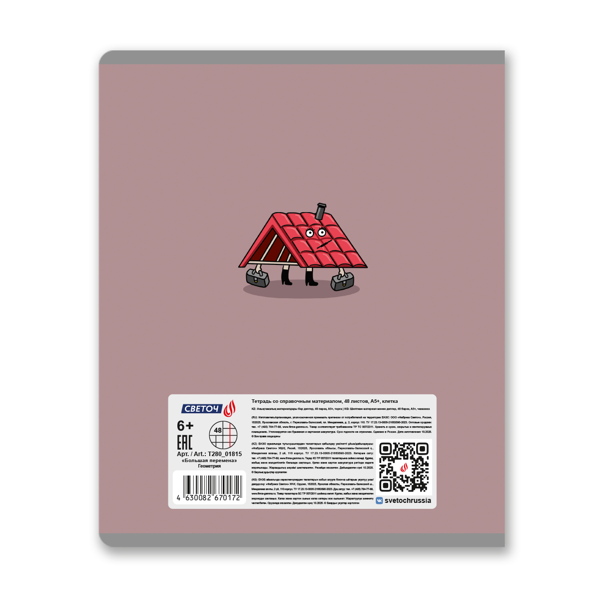 Предметная тетрадь А5 формата, 48 листов предназначена для учащихся средних и старших классов. Внутренний блок изготовлен из качественной офсетнойбумаги плотностью 65 г/кв. м, 100% белизны, обложка из мелованного картона плотностью 190 г/кв. м. Обложка дополнена спецэффектом в виде выборочного лака. Линовка - клетка, красные поля. Вид скрепления - скоба. Тетради имеют закругленные уголки, титульный лист. Справочная информация по предмету прикладные листы + форзац задней обложки.