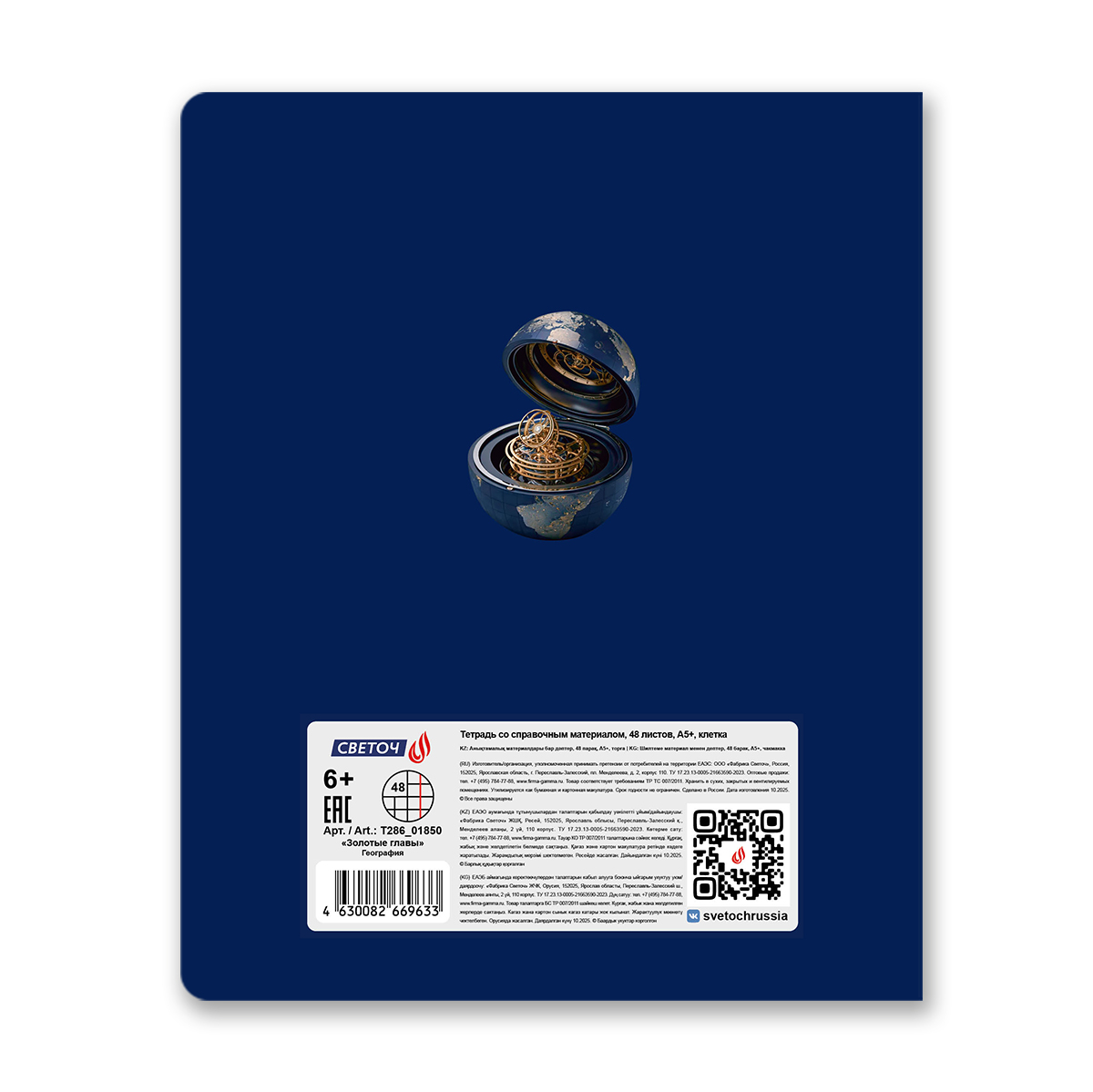 Светоч Т286 Тетрадь со справочным материалом Золотые главы, тисн.золот.фольгой, A5 48 л. на скобе 65 г/кв.м , белизна 100 % , клетка 01850 Золотые главы География Фото 4.