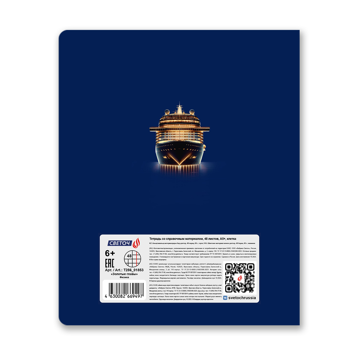 Внутренний блок изготовлен из качественной офсетной бумаги плотностью 65 г/кв. м, 100% белизны, обложка из мелованного картона плотностью 190 г/кв. м.