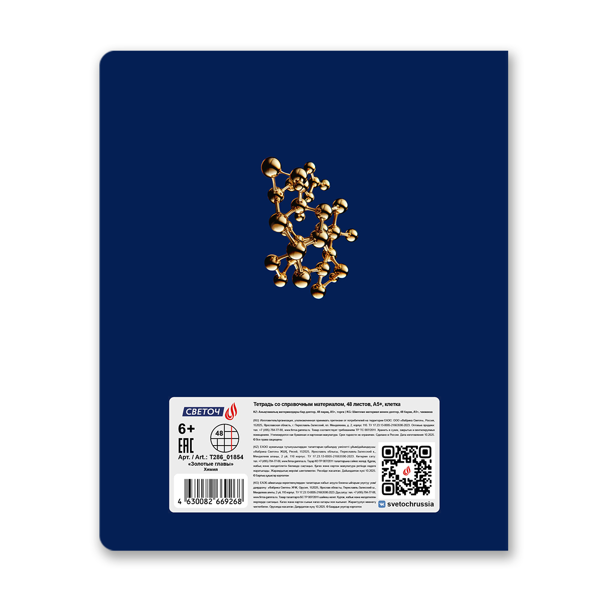 Светоч Т286 Тетрадь со справочным материалом Золотые главы, тисн.золот.фольгой, A5 48 л. на скобе 65 г/кв.м , белизна 100 % , клетка 01854 Золотые главы Химия Фото 1.