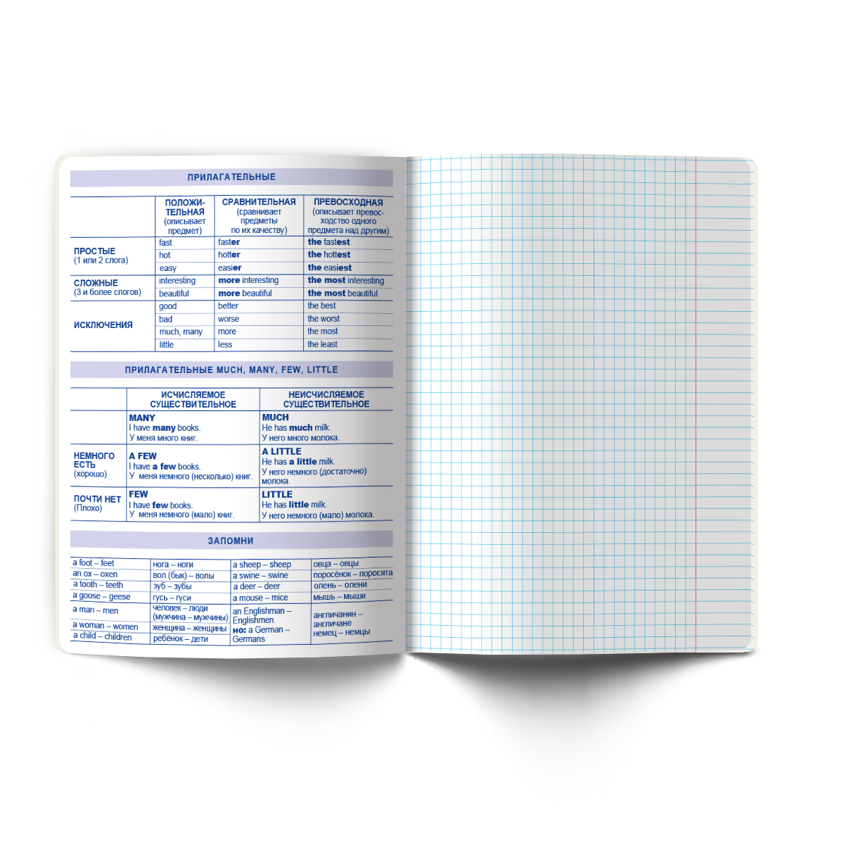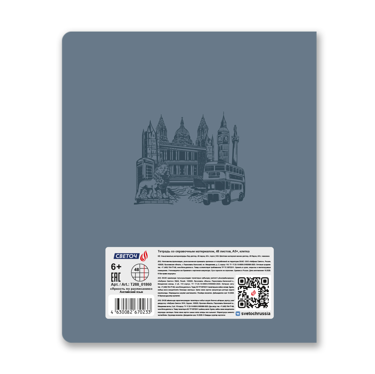 Светоч Т288 Тетрадь со справ.материал. Яркость по расписанию с запечат. пластик.обл. 320мкм, A5 48 л. на скобе 65 г/кв.м , белизна 100 % , клетка 01860 Яркость по расписанию Английский язык Фото 6.