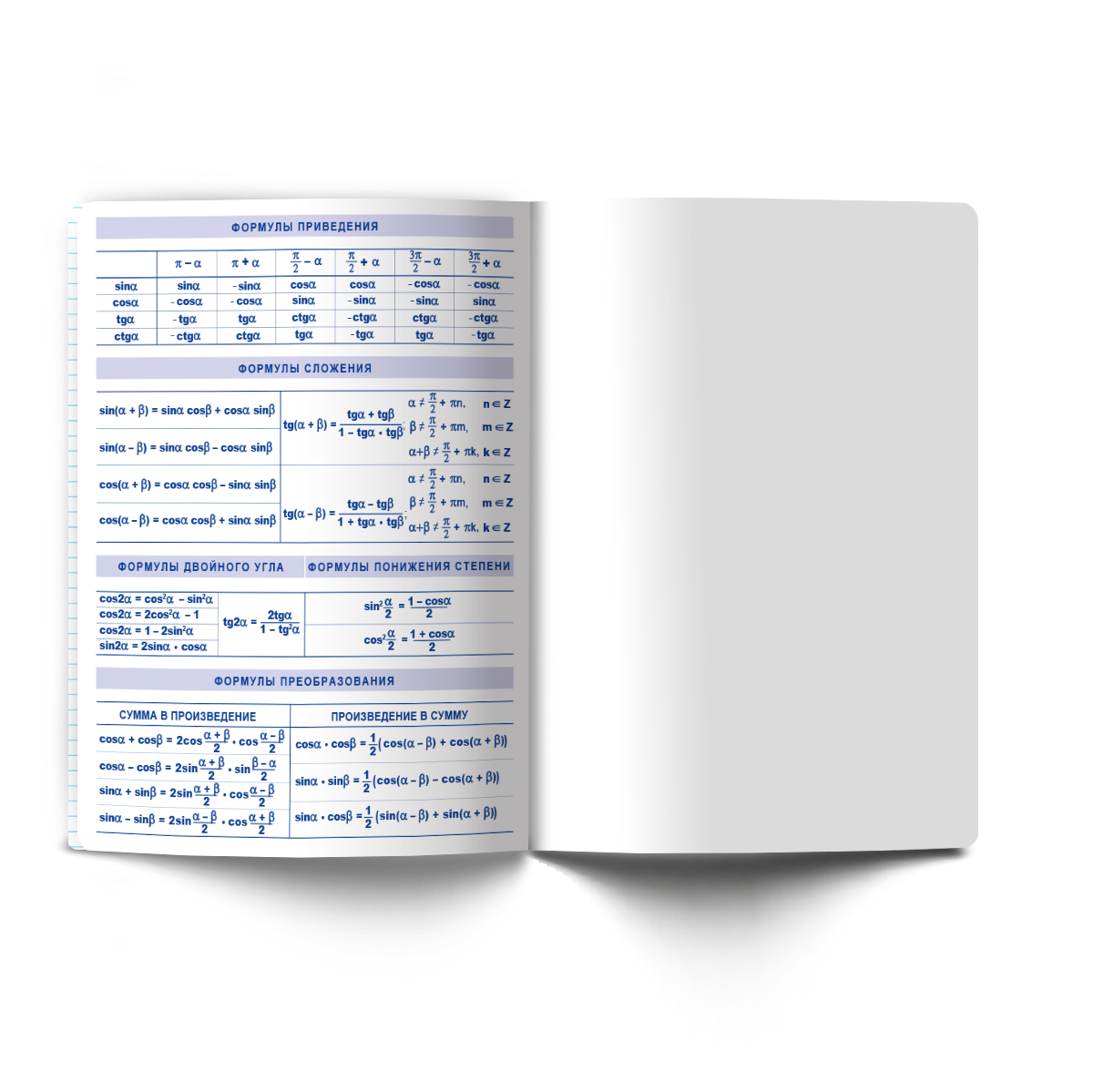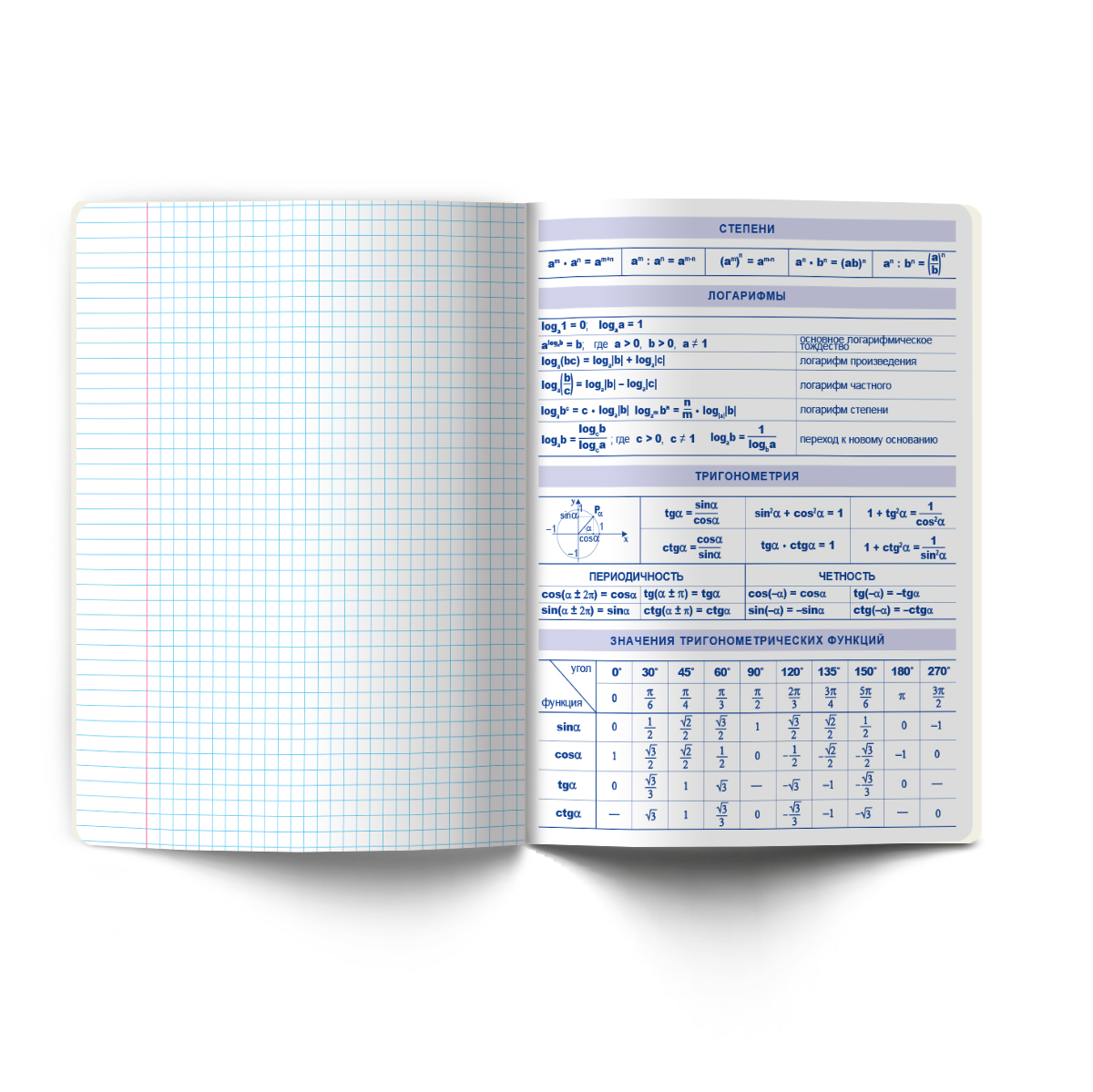 Тетради имеют закругленные уголки, титульный лист со справочным материалом.