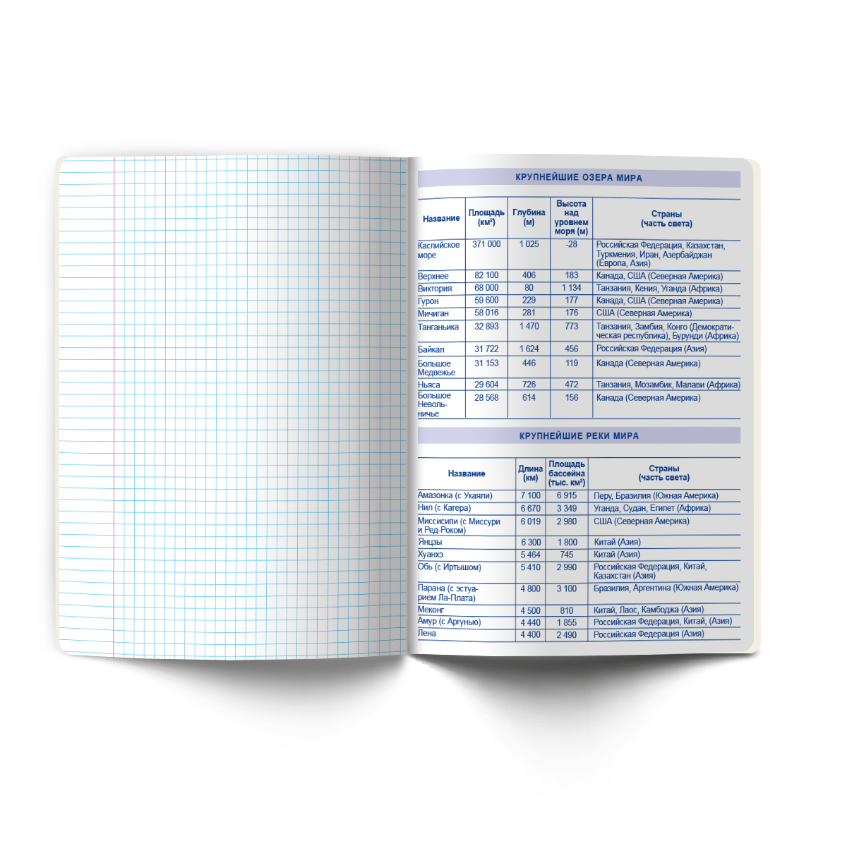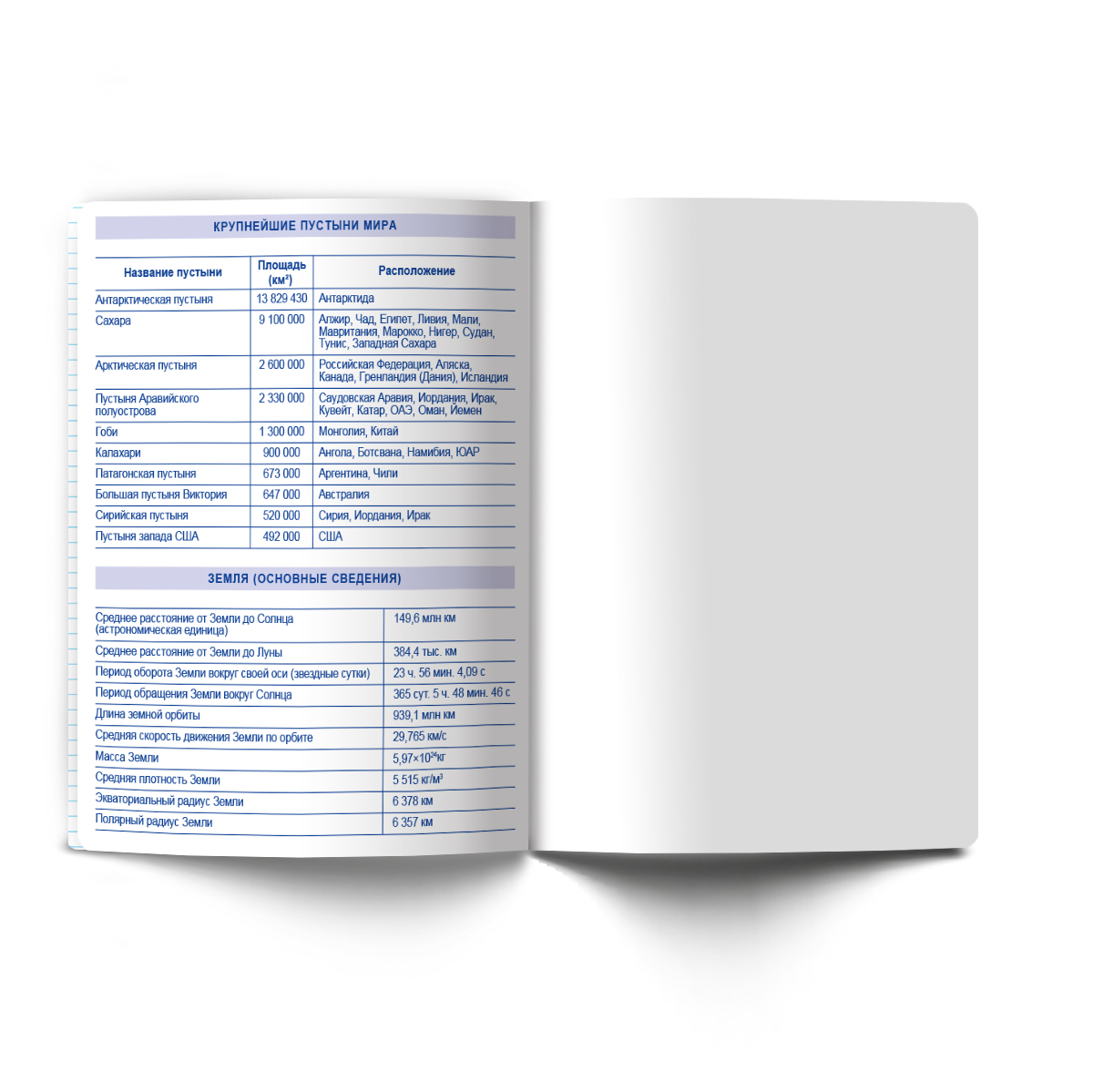 Тетради имеют закругленные уголки, титульный лист со справочным материалом.