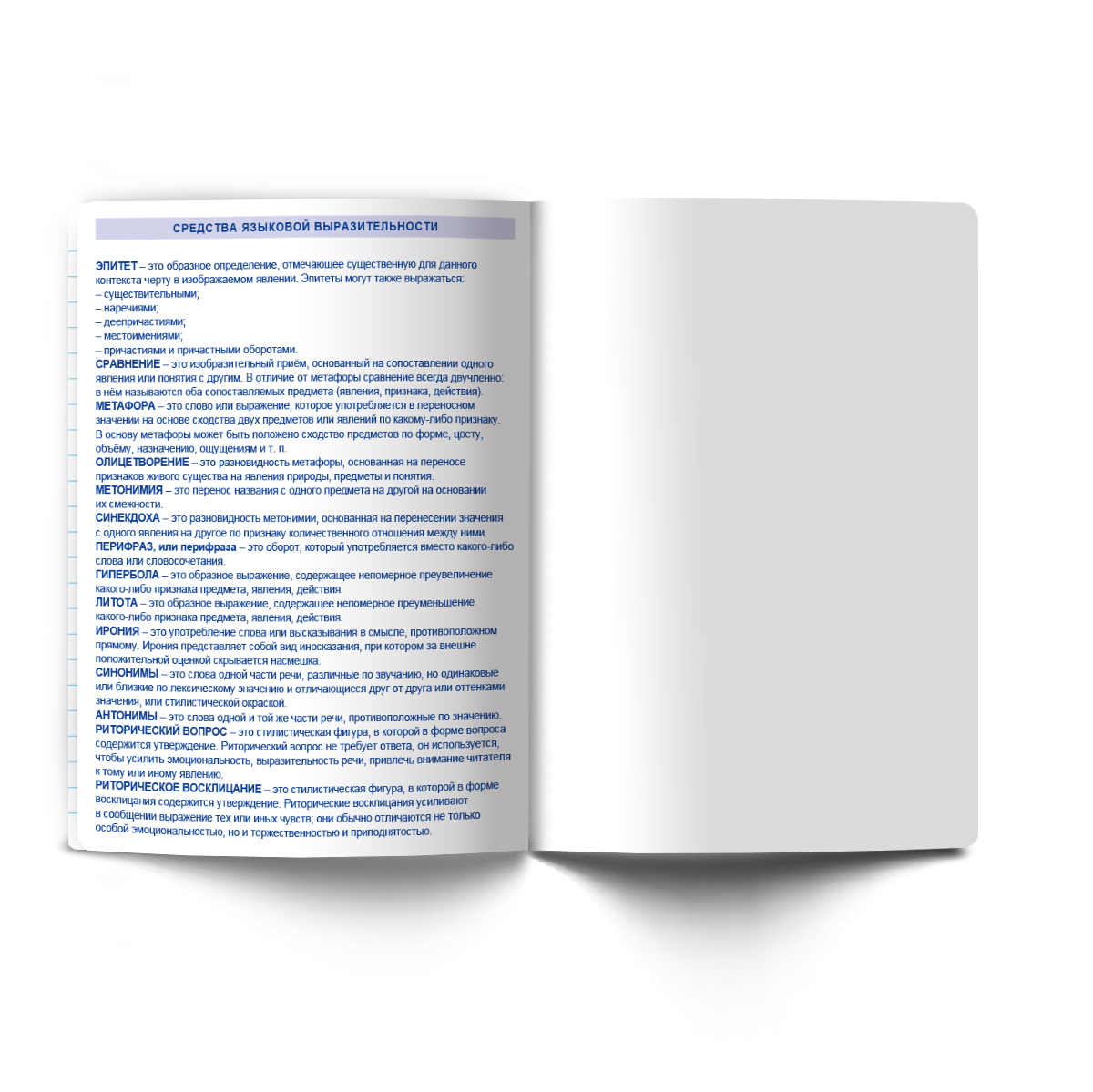Тетради имеют закругленные уголки, титульный лист со справочным материалом.