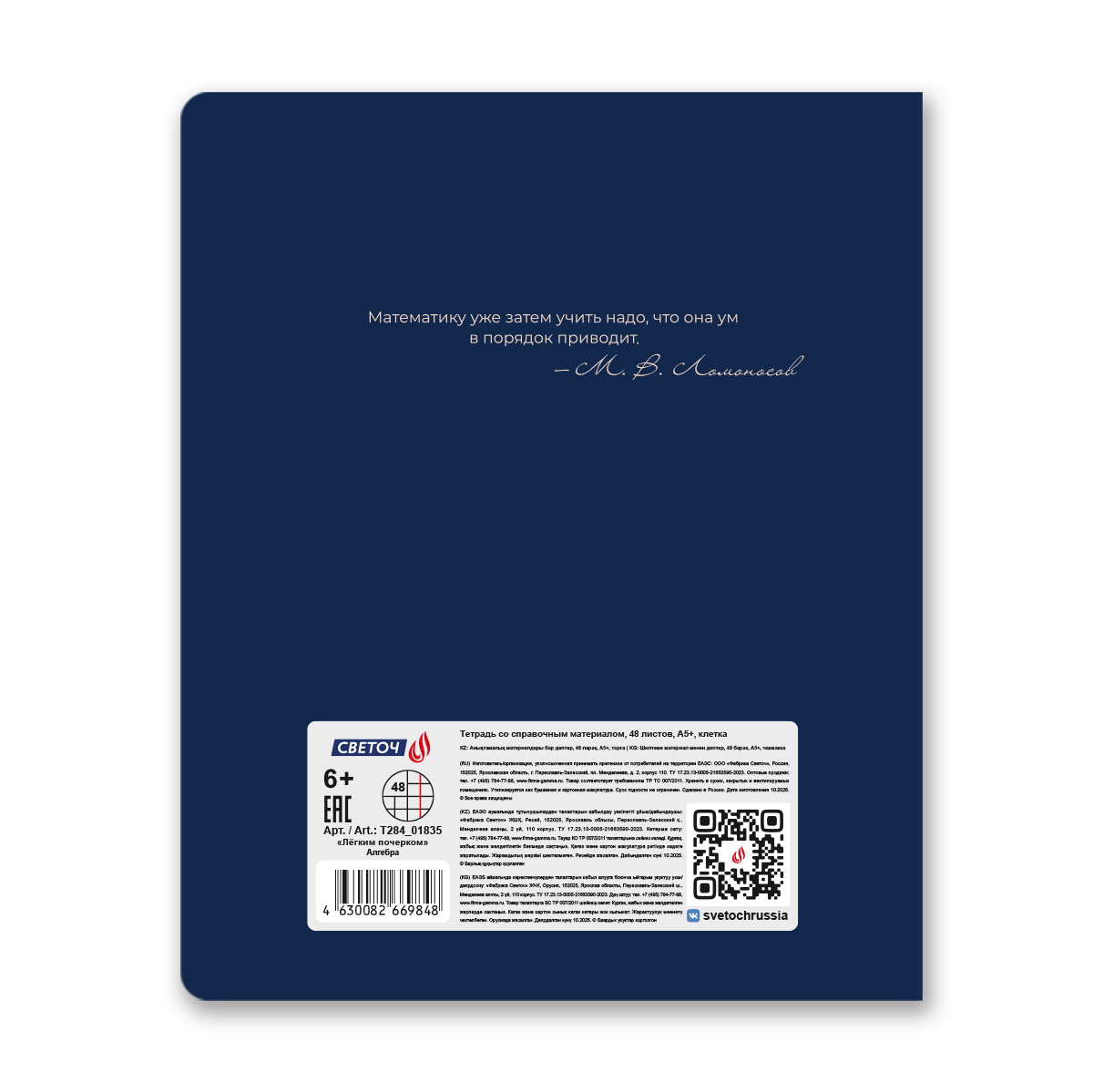 Светоч Т284 Тетрадь со справочным материалом Лёгким почерком, софт-тач ламинация, A5 48 л. на скобе 65 г/кв.м , белизна 100 % , клетка 01835 Лёгким почерком Алгебра Фото 5.