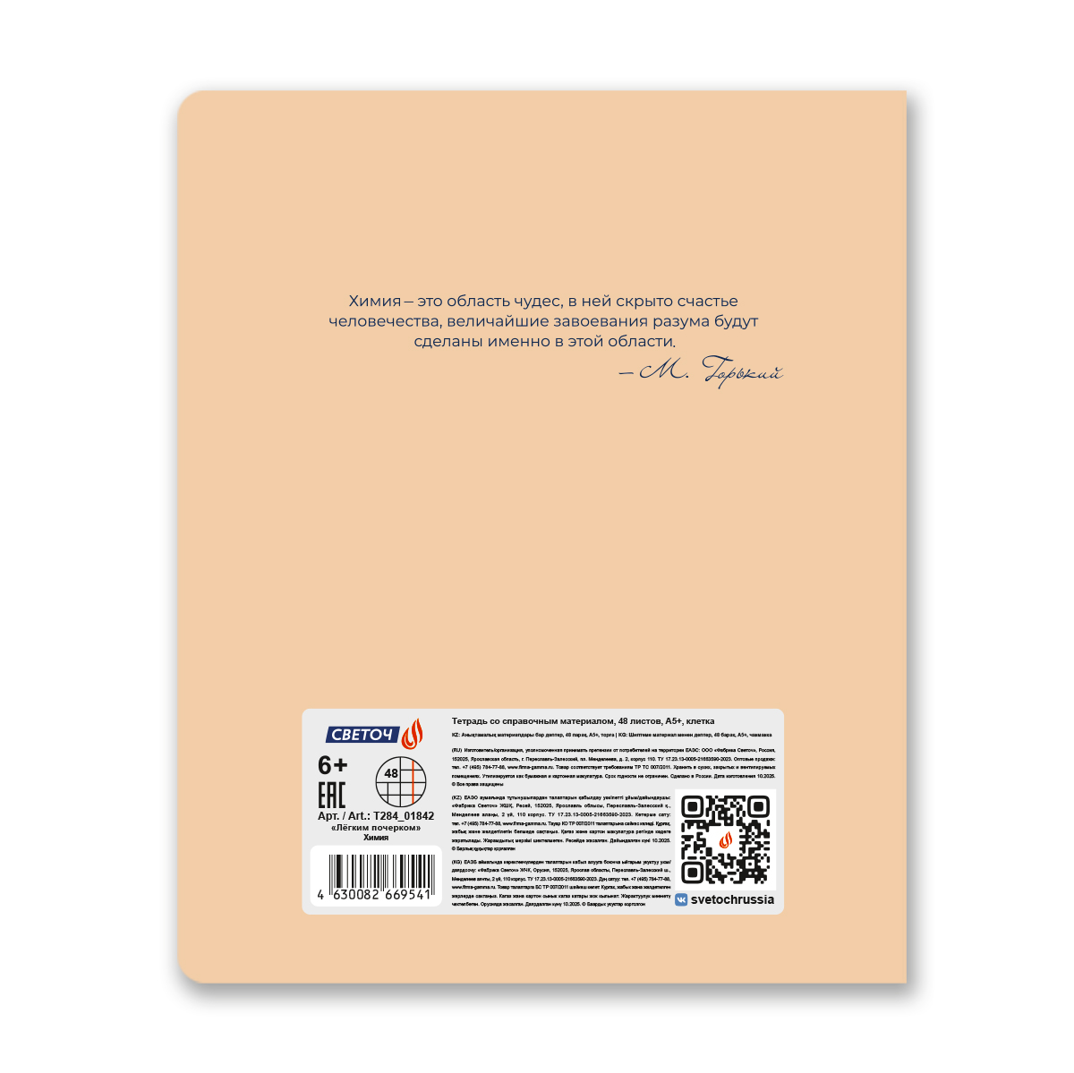 Светоч Т284 Тетрадь со справочным материалом Лёгким почерком, софт-тач ламинация, A5 48 л. на скобе 65 г/кв.м , белизна 100 % , клетка 01842 Лёгким почерком Химия Фото 3.
