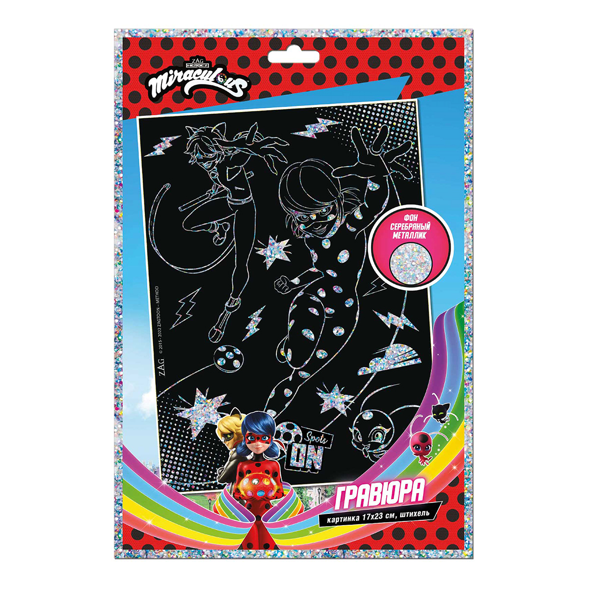 Гравюра - удивительный вид творчества, а с чудестной Леди Баг становится интересным. Набор для творчества включает в себя: Многослойная основа - металлизированное покрытие с черным грунтом и контурным рисунком для процарапывания сверху.Состав: 1 картинка 17*23 см [фон: серебро] , штихель