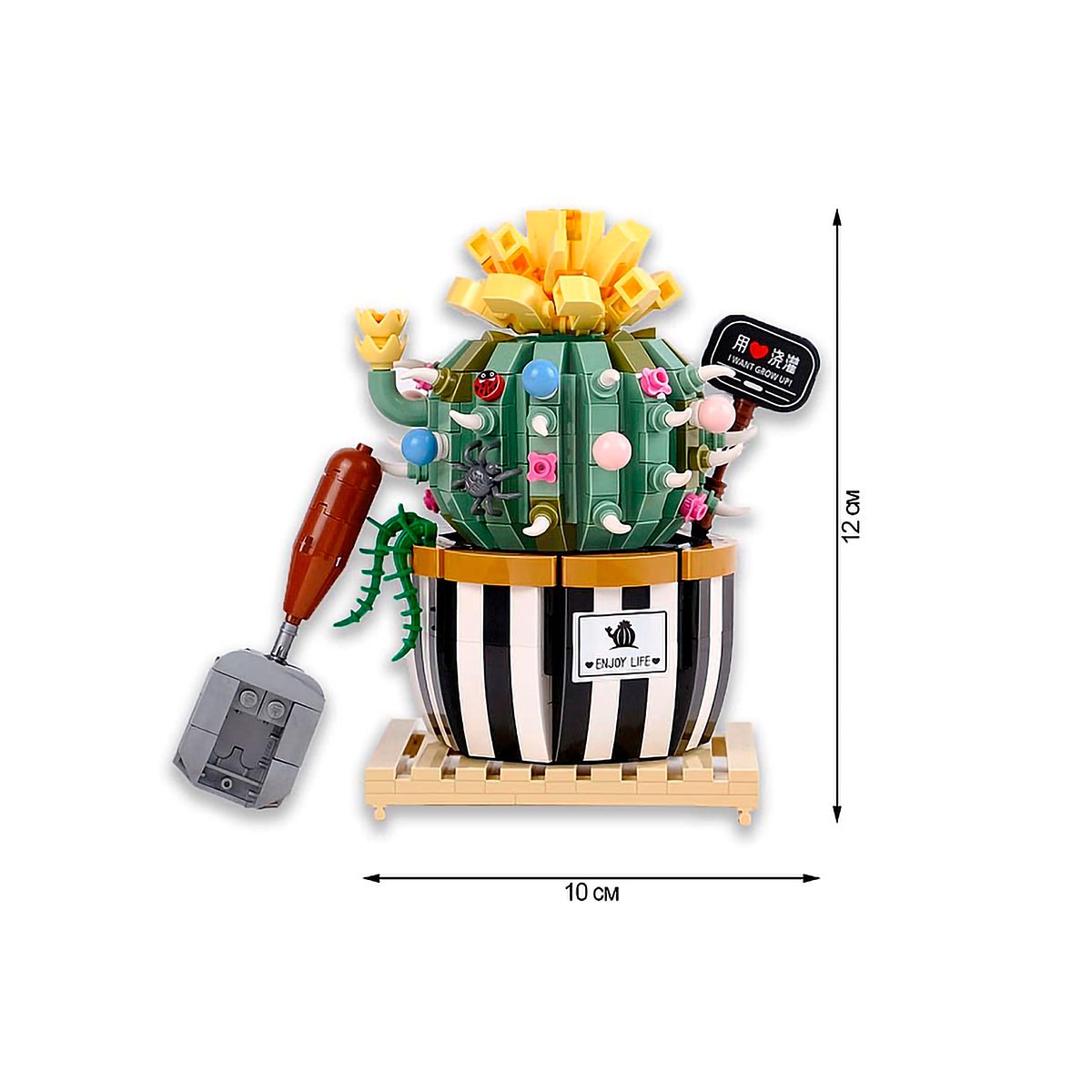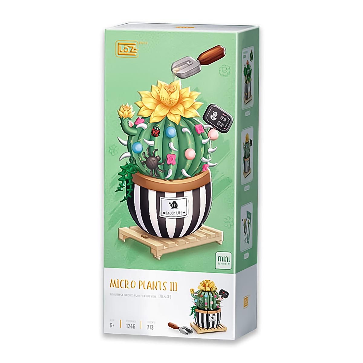 Конструктор LOZ „Кактус в горшочке“ [1246_MK] — настоящий восторг для ботаников от 8 лет и старше. С таким удивительным сортом кактусов вам вряд ли приходилось встречаться! Посмотрите, как он похож на нарядный чайничек, усевшийся в горшок. Великолепный цветок, венчающий растение так хорош, что до него пытаются добраться и паучок, и божья коровка. Конечно, такая красота требует ухода. Поэтому из 721 детали набора вы сможете собрать еще и маленькую лопатку, чтобы пересаживать растение. В собранном виде установленный на подставку кактус имеет размеры 10 см в ширину, 7,5 см в глубину, 12 см в высоту и станет превосходным украшением для любого интерьера.