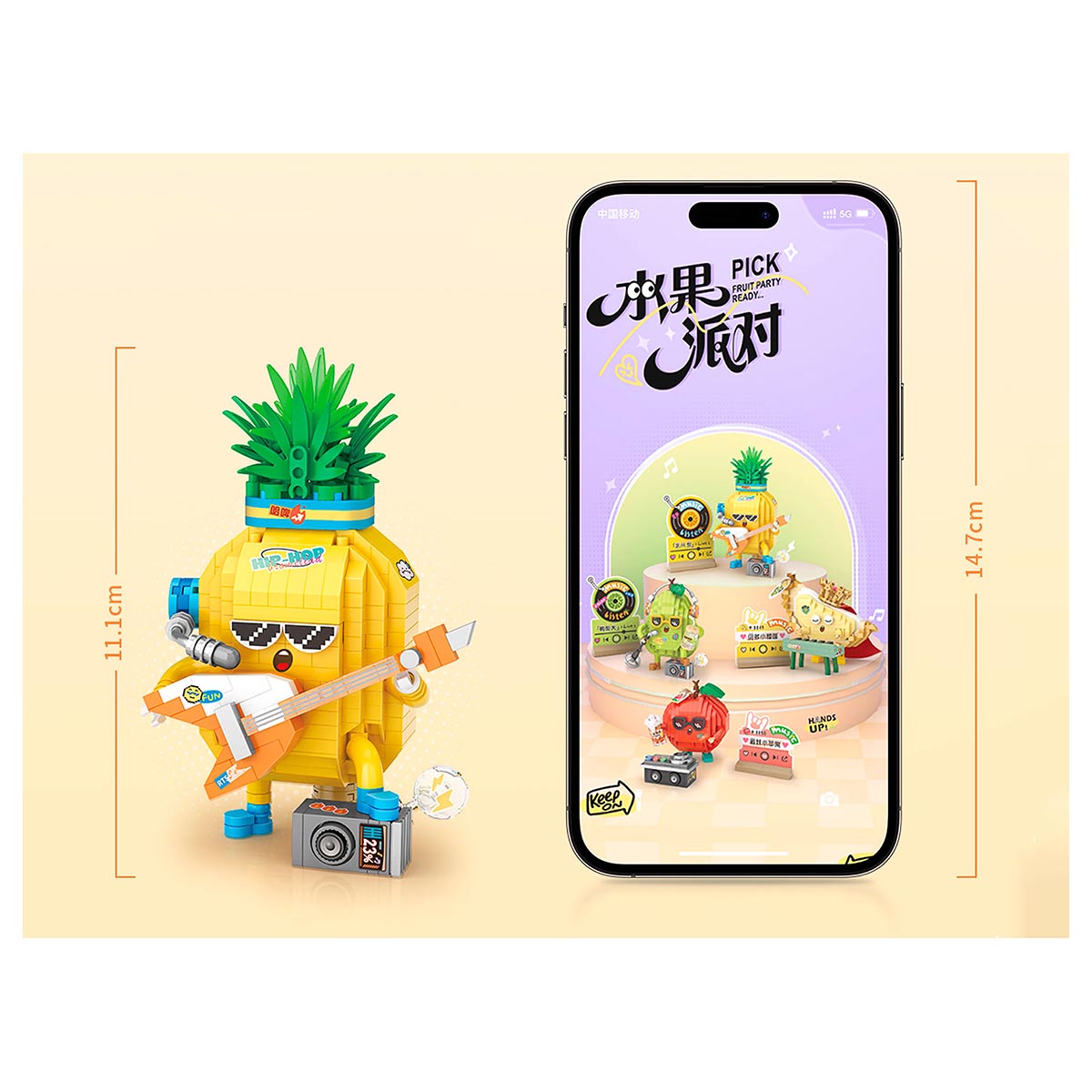 Приготовьтесь к тематической фруктовой вечеринке с конструктором LOZ «Бас-Ананас» [8847_MK]. Вас ждет встреча с уникальным персонажем — забавным ананасом в солнечных очках с гитарой и микрофоном, готовым устроить настоящий музыкальный праздник. Этот герой станет отличным дополнением к коллекции фигурок, ведь он не только оригинально выглядит, но и заряжает позитивом. Аксессуары, включая динамик, расширяют возможности игры. Идеальный подарок для поклонников музыки, фруктов и развлечений от 6 лет и старше.