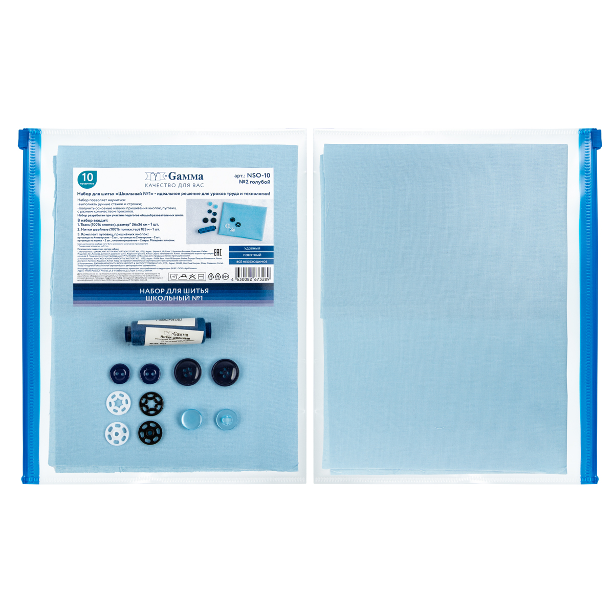 Набор для шитья Gamma NSO-10 Набор для шитья Школьный №1 10 предметов ШК-02 голубой Фото 1.