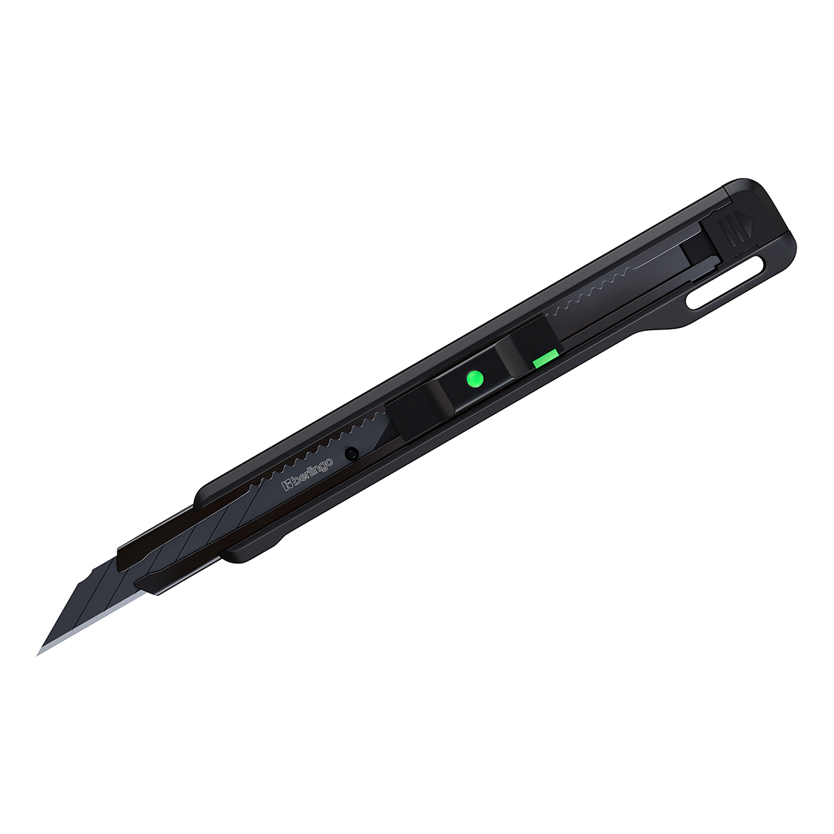 Канцелярский нож Berlingo серии Razzor 400 чёрного цвета выполнен из высококачественного ABS пластика, имеет металлические направляющие и покрытие soft-touch. Комплектуется износостойким лезвием из стали SK5 с углом 30°. Ширина лезвия: 9 мм. Автоматическая фиксация лезвия AUTO-LOCK. Модель оснащена дополнительным замком блокировки лезвия. Индивидуальная упаковка – блистер с европодвесом. • Материал корпуса: пластик; • Ширина лезвия: 9 мм; • Цвет корпуса: чёрный; • Механизм фиксации лезвия: автоматический.