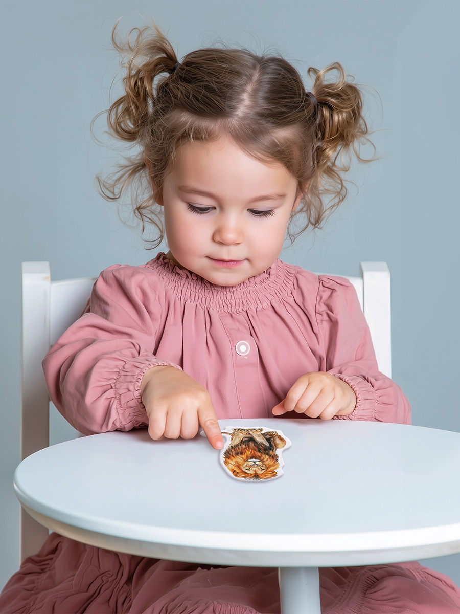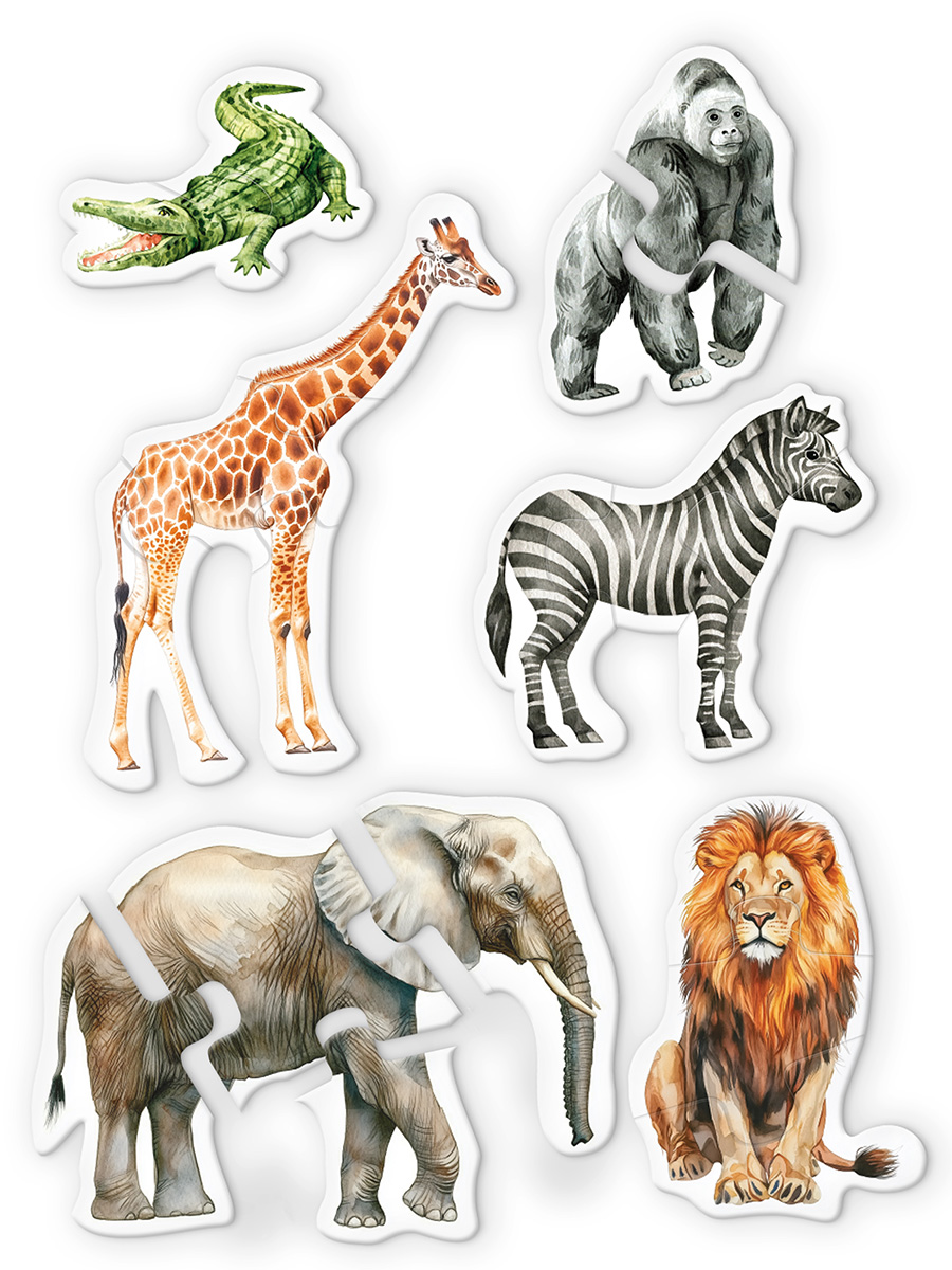 Наши беби-пазлы созданы специально для любознательных малышей: крупные детали удобно держать в ручке, а яркие изображения сразу привлекают внимание. Собирая пазлы, ребенок не просто играет — он развивает мелкую моторику, внимание, логику и речь. Фигурные пазлы, состоящие из нескольких элементов, учат ребенка собирать цельный образ из частей и развивают пространственное мышление. Набор содержит 6 фигурок, состоящих из 2–4 частей. Размеры собранных изображений: от 6 до 15 см.