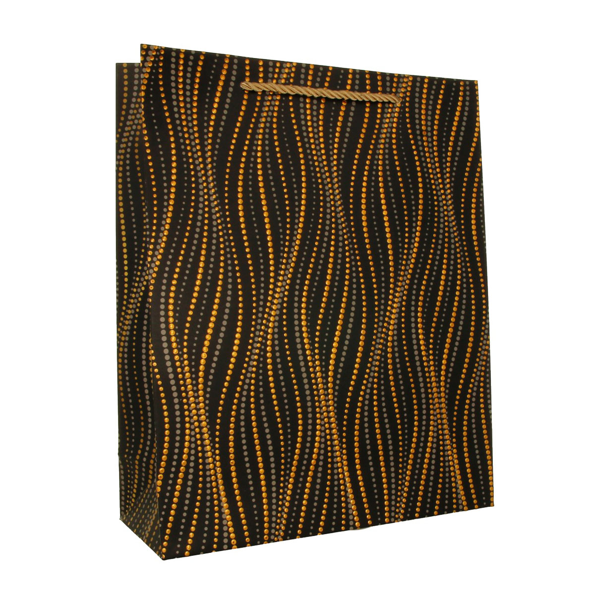 Пакет подарочный 26 х 32 х 12 см с графическим рисунком "змейки из точек" с золотым тиснением L7153