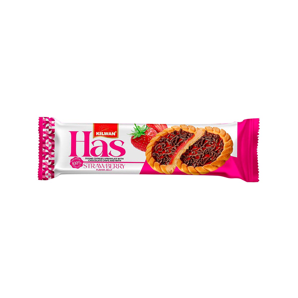 Сахарное печенье HAS с начинкой-желе со вкусом клубники, украшенные шоколадной крошкой.