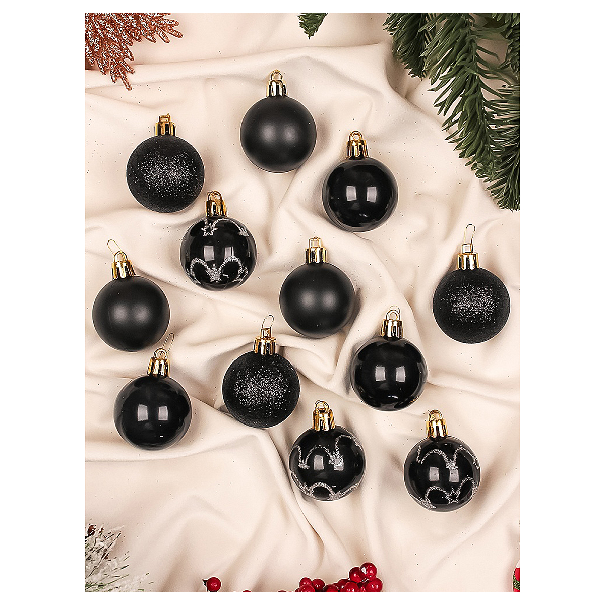 Шар — незаменимое ёлочное украшение, которое поможет создать невероятно уютную атмосферу Нового Года! Набор ёлочных шаров в едином стиле прекрасно подойдёт для декора ёлки или других элементов интерьера. Шары прослужат вам долгие годы, так как сделаны из прочного пластика. Вам не придётся беспокоиться, что дети или животные их разобьют! Размер: 4 см. В наборе 12 шт. Цвет: черный с узором.