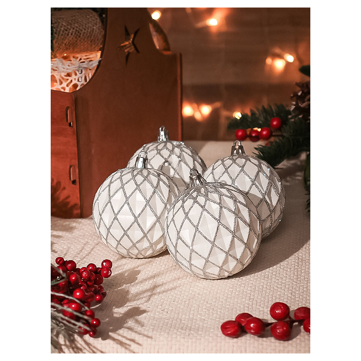 Шар — незаменимое ёлочное украшение, которое поможет создать невероятно уютную атмосферу Нового Года! Набор ёлочных шаров в едином стиле прекрасно подойдёт для декора ёлки или других элементов интерьера. Шары прослужат вам долгие годы, так как сделаны из прочного пластика. Вам не придётся беспокоиться, что дети или животные их разобьют! Размер: 8 см. В наборе 4 шт.