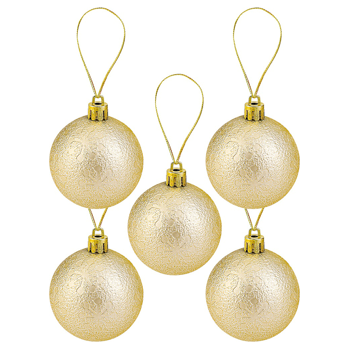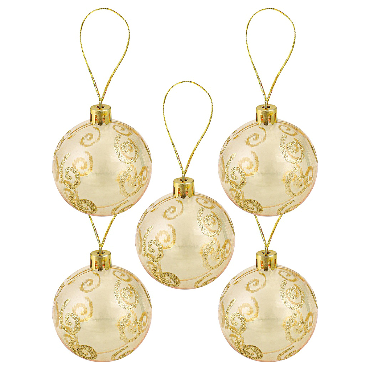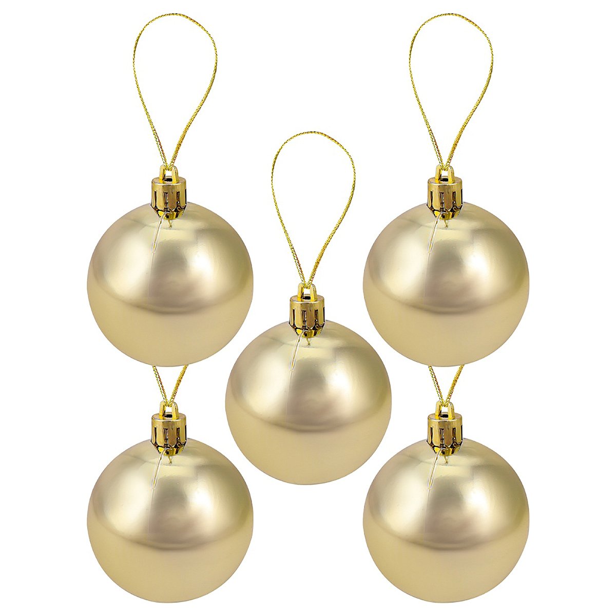 Ёлочные шары — незаменимый декор, который помогает создавать невероятно уютную атмосферу Нового Года! Они эффектно выделяются на фоне хвои, придавая оформлению праздничный вид. Игрушки выполнены из пластика, что невероятно практично. Если в вашем доме есть дети или питомцы, вам не придётся беспокоиться о сохранности подвесок! Размер шаров: 6 см. Цвет: золотой. В наборе: 20 шаров, 1 верхушка.