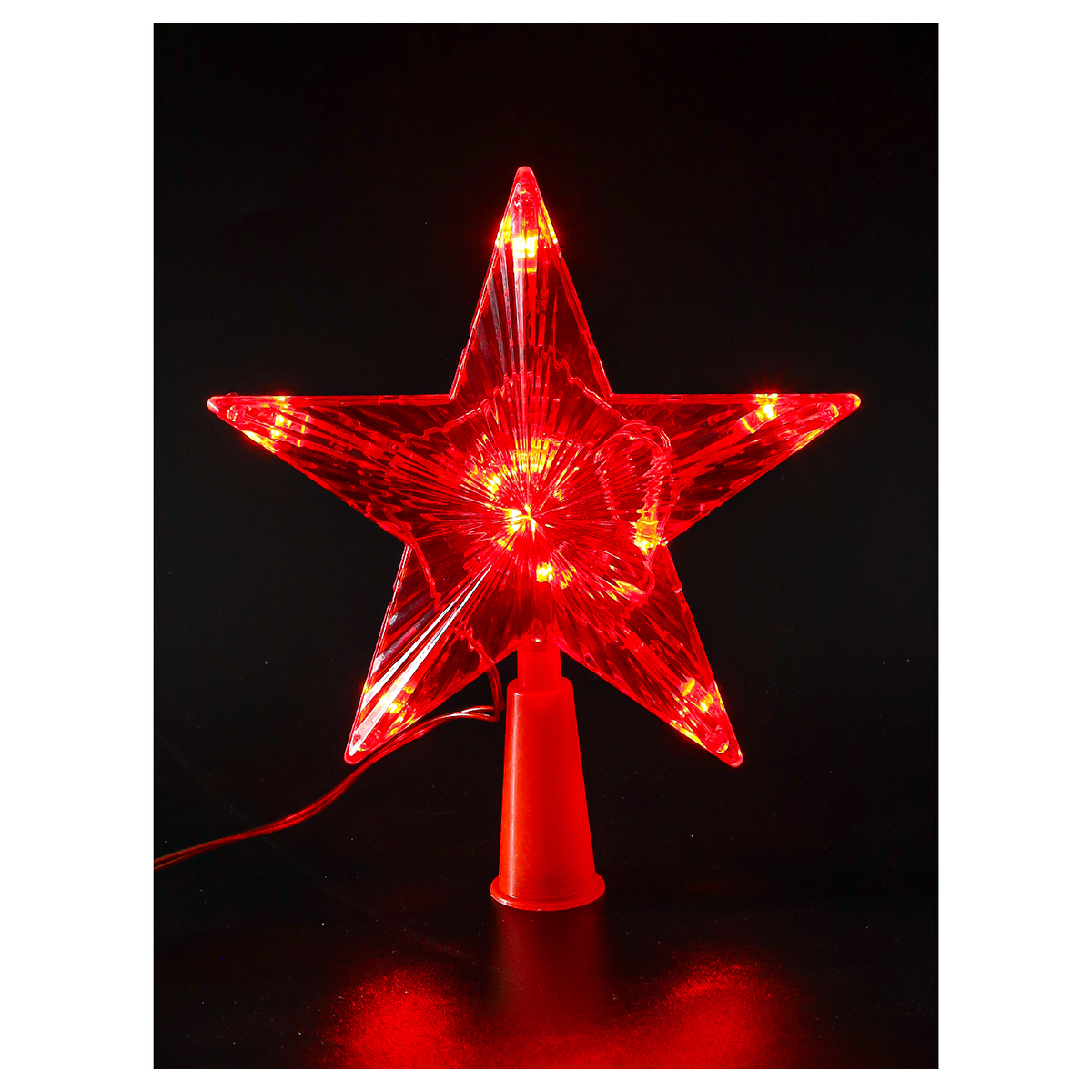 Верхушка на елку — финальный штрих в оформлении вашего новогоднего дерева! Она помогает создавать невероятно уютную атмосферу. Звезда с led-посветкой порадует домочадцев и впечатлит гостей. Подсветка работает в 1 режиме. Размер: 15х15 см. Цвет:красный.
