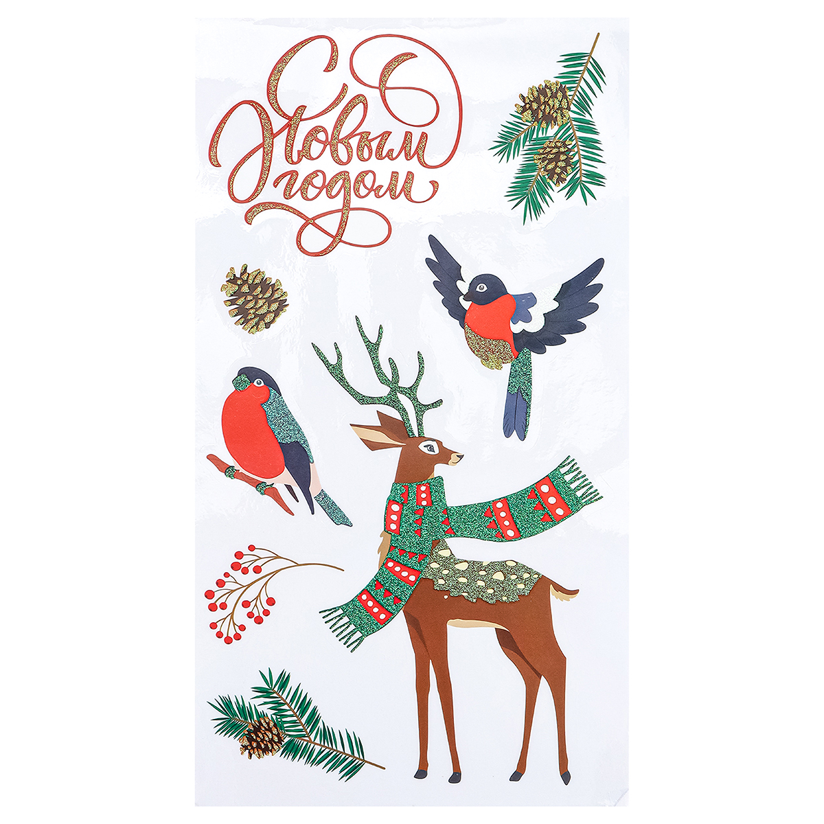 Новогодние интерьерные наклейки помогут интересно оформить декор! Они отлично подходят для украшения стен или окон. Клейкая основа надежно крепит наклейки и легко удаляется, не оставляя следов. Размер: 25х14 см. Собственная разработка. Материал: бумага, ПВХ. Упаковка: пакет.